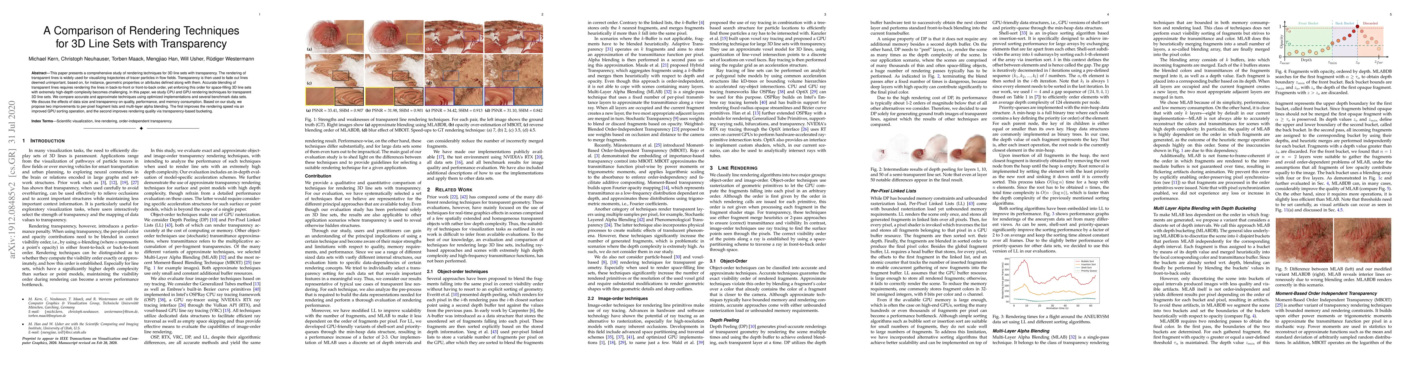 This paper compares CPU and GPU rendering techniques for large 3D line sets with transparency, proposing improvements to enhance performance and quality.