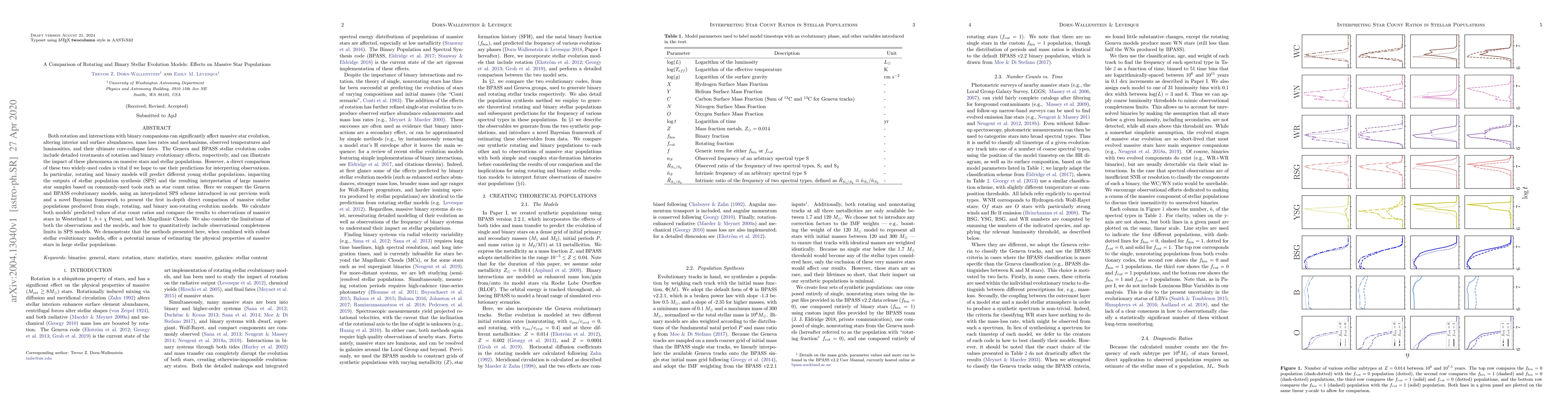 Both rotation and interactions with binary companions can significantly affect massive star evolution, altering interior and surface abundances, mass loss rates and mechanisms, observed temperatures and luminosities, and their ultimate core-collapse fates. The Geneva and BPASS stellar evolution codes include detailed treatments of rotation and binary evolutionary effects, respectively, and can illustrate the impact of these phenomena on massive stars and stellar populations. However, a direct comparison of these two widely-used codes is vital if we hope to use their predictions for interpreting observations. In particular, rotating and binary models will predict different young stellar populations, impacting the outputs of stellar population synthesis (SPS) and the resulting interpretation of large massive star samples based on commonly-used tools such as star count ratios. Here we compare the Geneva and BPASS evolutionary models, using an interpolated SPS scheme introduced in our previous work and a novel Bayesian framework to present the first in-depth direct comparison of massive stellar populations produced from single, rotating, and binary non-rotating evolution models. We calculate both models' predicted values of star count ratios and compare the results to observations of massive stars in Westerlund 1, $h + \chi$ Persei, and both Magellanic Clouds. We also consider the limitations of both the observations and the models, and how to quantitatively include observational completeness limits in SPS models. We demonstrate that the methods presented here, when combined with robust stellar evolutionary models, offer a potential means of estimating the physical properties of massive stars in large stellar populations.