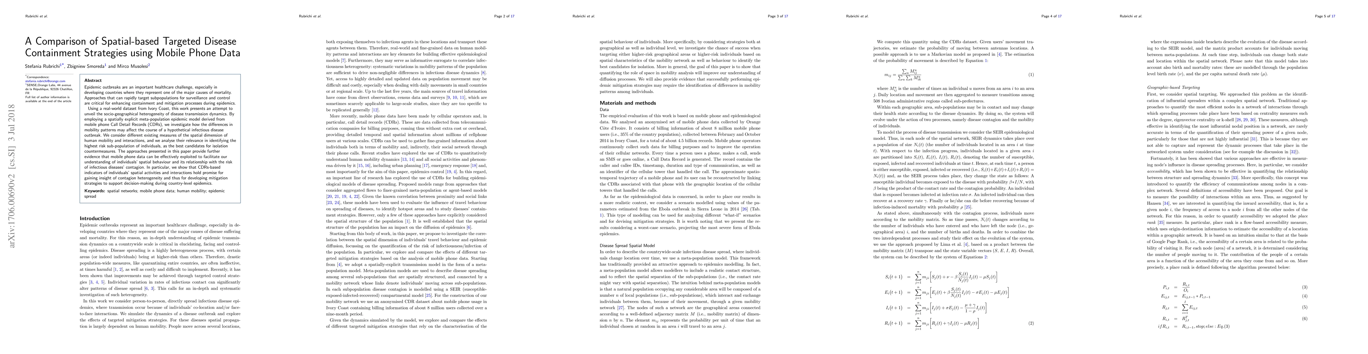 Epidemic outbreaks are an important healthcare challenge, especially in developing countries where they represent one of the major causes of mortality. Approaches that can rapidly target subpopulations for surveillance and control are critical for enhancing containment processes during epidemics. Using a real-world dataset from Ivory Coast, this work presents an attempt to unveil the socio-geographical heterogeneity of disease transmission dynamics. By employing a spatially explicit meta-population epidemic model derived from mobile phone Call Detail Records (CDRs), we investigate how the differences in mobility patterns may affect the course of a realistic infectious disease outbreak. We consider different existing measures of the spatial dimension of human mobility and interactions, and we analyse their relevance in identifying the highest risk sub-population of individuals, as the best candidates for isolation countermeasures. The approaches presented in this paper provide further evidence that mobile phone data can be effectively exploited to facilitate our understanding of individuals' spatial behaviour and its relationship with the risk of infectious diseases' contagion. In particular, we show that CDRs-based indicators of individuals' spatial activities and interactions hold promise for gaining insight of contagion heterogeneity and thus for developing containment strategies to support decision-making during country-level pandemics.