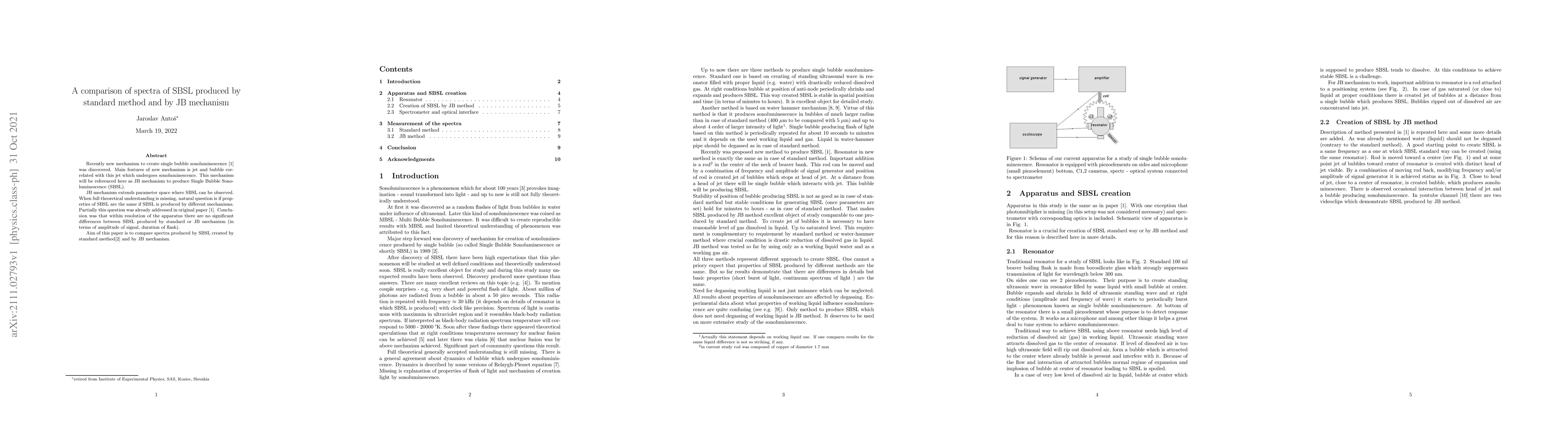 Recently new mechanism to create single bubble sonoluminescence was discovered. Main features of new mechanism is jet and bubble correlated with this jet which undergoes sonoluminescence. This mechanism will be referenced here as JB mechanism to produce Single Bubble Sonoluminescence (SBSL). JB mechanism extends parameter space where SBSL can be observed. When full theoretical understanding is missing, natural question is if properties of SBSL are the same if SBSL is produced by different mechanisms. Partially this question was already addressed in original paper. Conclusion was that within resolution of the apparatus there are no significant differences between SBSL produced by standard or JB mechanism (in terms of amplitude of signal, duration of flash). Aim of this paper is to compare spectra produced by SBSL created by standard method\cite{gaitan} and by JB mechanism.