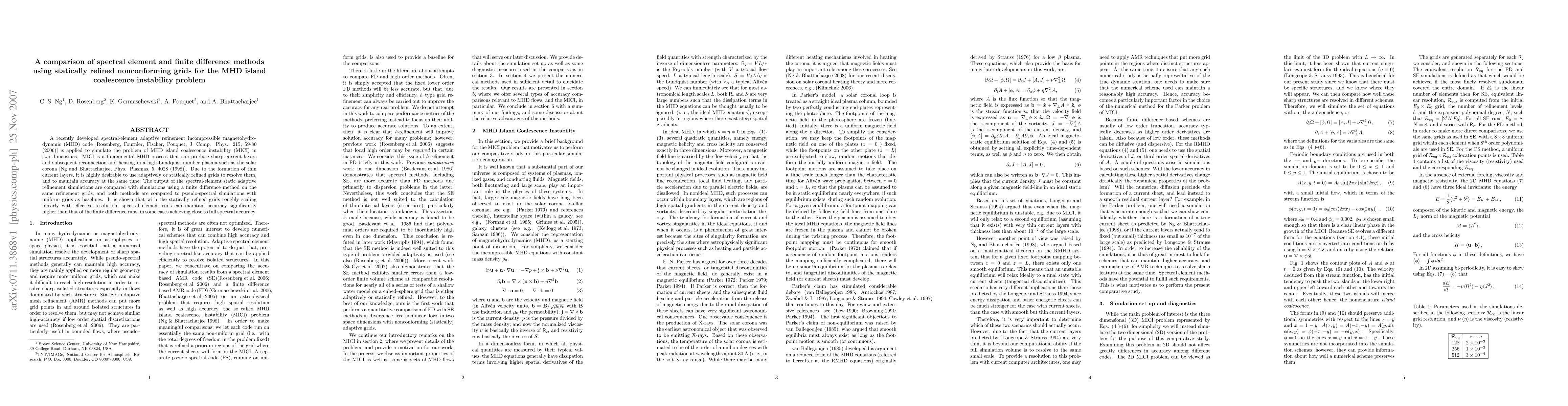 A recently developed spectral-element adaptive refinement incompressible magnetohydrodynamic (MHD) code [Rosenberg, Fournier, Fischer, Pouquet, J. Comp. Phys. 215, 59-80 (2006)] is applied to simulate the problem of MHD island coalescence instability (MICI) in two dimensions. MICI is a fundamental MHD process that can produce sharp current layers and subsequent reconnection and heating in a high-Lundquist number plasma such as the solar corona [Ng and Bhattacharjee, Phys. Plasmas, 5, 4028 (1998)]. Due to the formation of thin current layers, it is highly desirable to use adaptively or statically refined grids to resolve them, and to maintain accuracy at the same time. The output of the spectral-element static adaptive refinement simulations are compared with simulations using a finite difference method on the same refinement grids, and both methods are compared to pseudo-spectral simulations with uniform grids as baselines. It is shown that with the statically refined grids roughly scaling linearly with effective resolution, spectral element runs can maintain accuracy significantly higher than that of the finite difference runs, in some cases achieving close to full spectral accuracy.