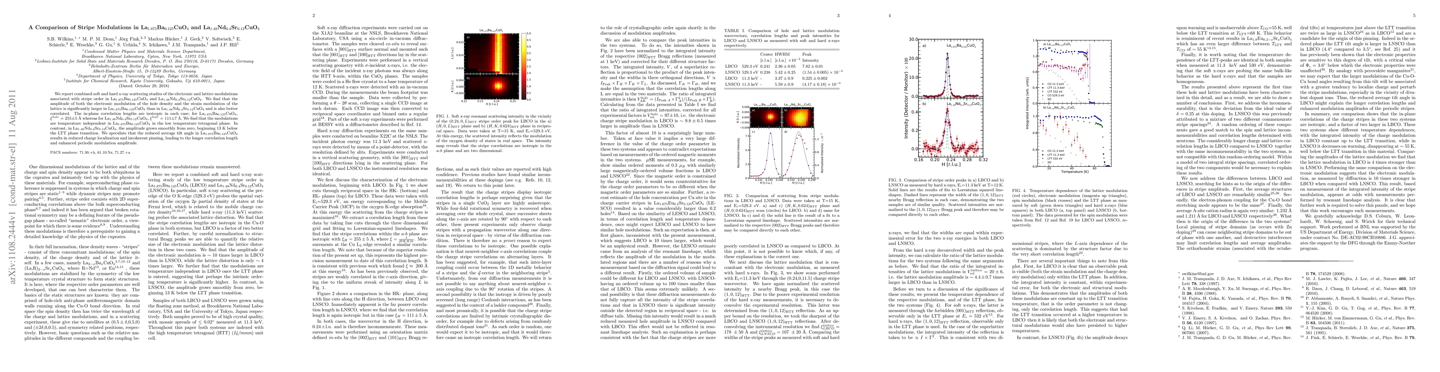 This study compares the stripe modulations in two copper oxide compounds, finding that La$_{1.875}$Ba$_{0.125}$CuO$_4$ exhibits significantly larger and more correlated electronic and lattice modulations compared to La$_{1.48}$Nd$_{0.4}$Sr$_{0.12}$CuO$_4$, with a longer hole correlation length and modulations that remain stable over temperature changes.