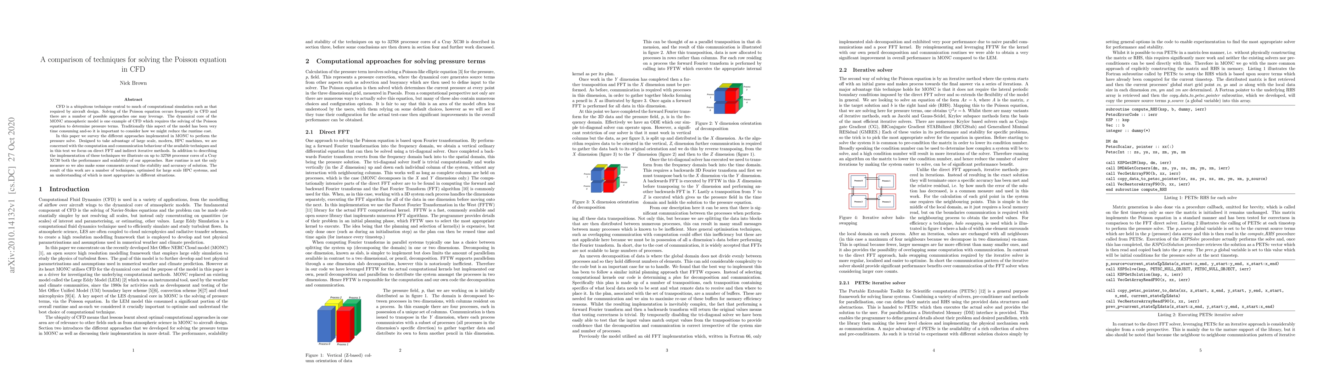 CFD is a ubiquitous technique central to much of computational simulation such as that required by aircraft design. Solving of the Poisson equation occurs frequently in CFD and there are a number of possible approaches one may leverage. The dynamical core of the MONC atmospheric model is one example of CFD which requires the solving of the Poisson equation to determine pressure terms. Traditionally this aspect of the model has been very time consuming and-so it is important to consider how we might reduce the runtime cost. In this paper we survey the different approaches implemented in MONC to perform the pressure solve. Designed to take advantage of large scale, modern, HPC machines, we are concerned with the computation and communication behaviour of the available techniques and in this text we focus on direct FFT and indirect iterative methods. In addition to describing the implementation of these techniques we illustrate on up to 32768 processor cores of a Cray XC30 both the performance and scalability of our approaches. Raw runtime is not the only measure so we also make some comments around the stability and accuracy of solution. The result of this work are a number of techniques, optimised for large scale HPC systems, and an understanding of which is most appropriate in different situations.