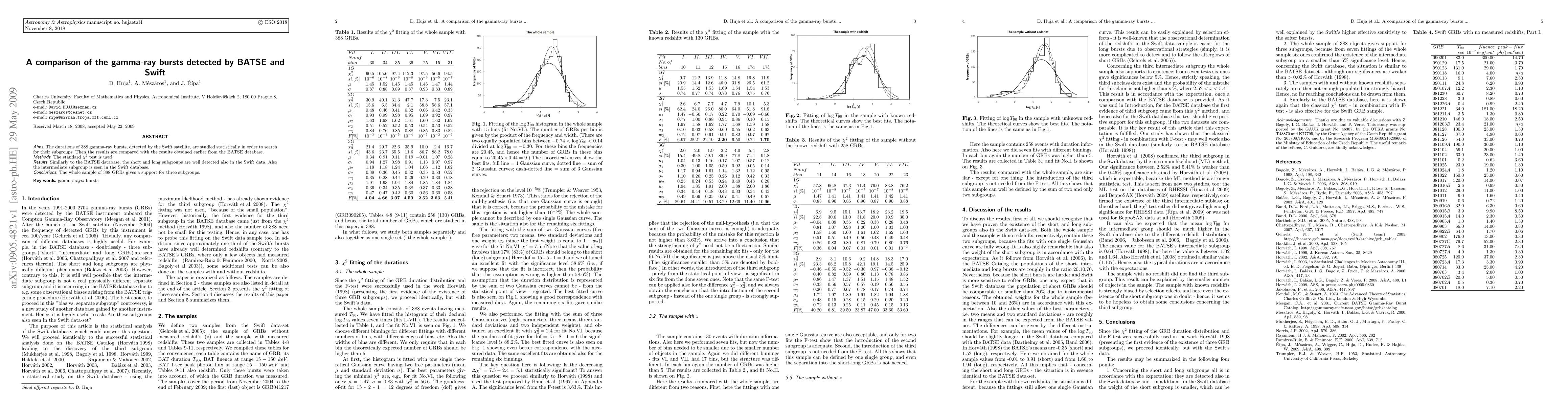 The durations of 388 gamma-ray bursts, detected by the Swift satellite, are studied statistically in order to search for their subgroups. Then the results are compared with the results obtained earlier from the BATSE database. The standard chi^2 test is used. Similarly to the BATSE database, the short and long subgroups are well detected also in the Swift data. Also the intermediate subgroup is seen in the Swift database. The whole sample of 388 GRBs gives a support for three subgroups.