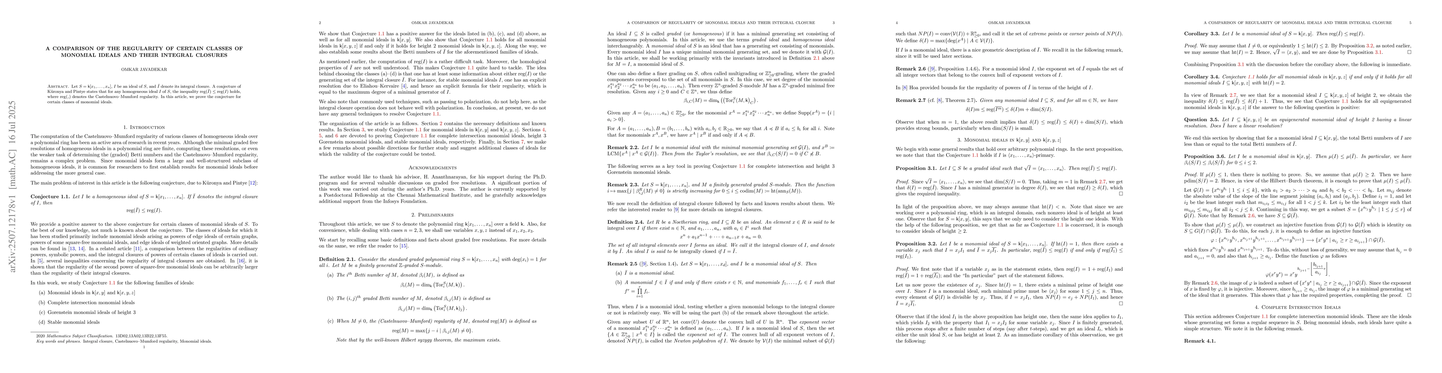 This research proves a conjecture by Küronya and Pintye regarding the regularity of certain monomial ideals and their integral closures in polynomial rings. The proof is applicable to specific classes of these monomial ideals.