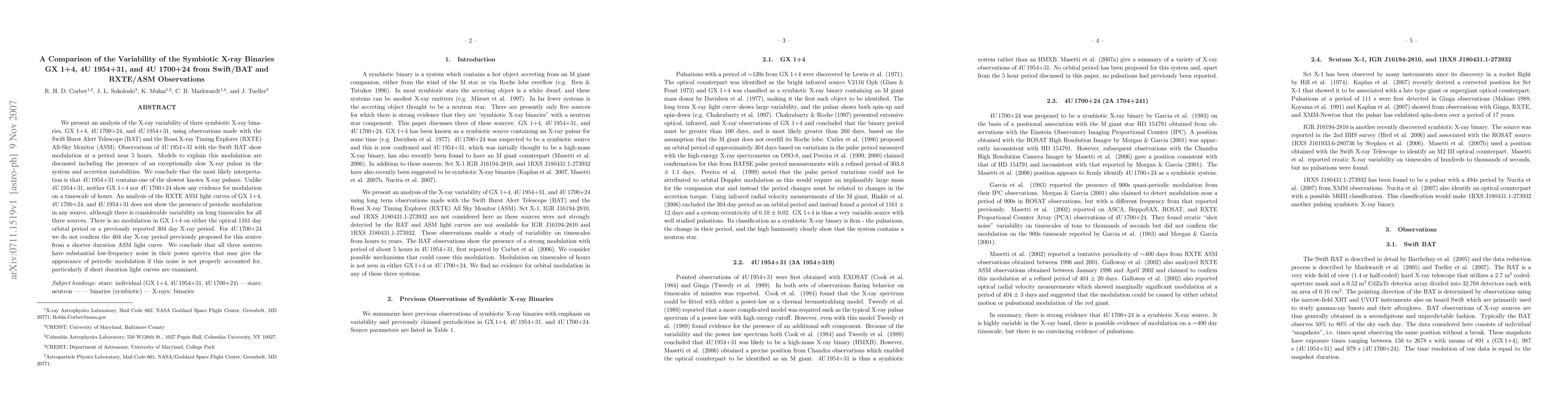 This study compares the X-ray variability of three symbiotic X-ray binaries using Swift/BAT and RXTE/ASM data, finding that 4U 1954+31 likely contains one of the slowest known X-ray pulsars, while GX 1+4 and 4U 1700+24 show no evidence of periodic modulation, suggesting substantial low-frequency noise in their power spectra.
