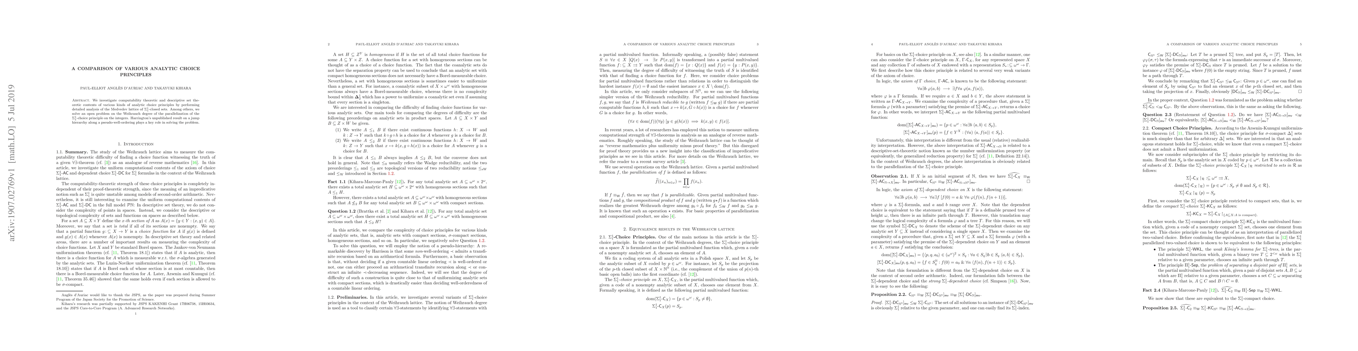 This research compares different analytic choice principles using computability theory and descriptive set theory, solving an open problem about the Weihrauch degree of parallelized $Sigma^1_1$-choice on integers. Harrington's jump hierarchy along pseudo-well-orderings is crucial to the solution.