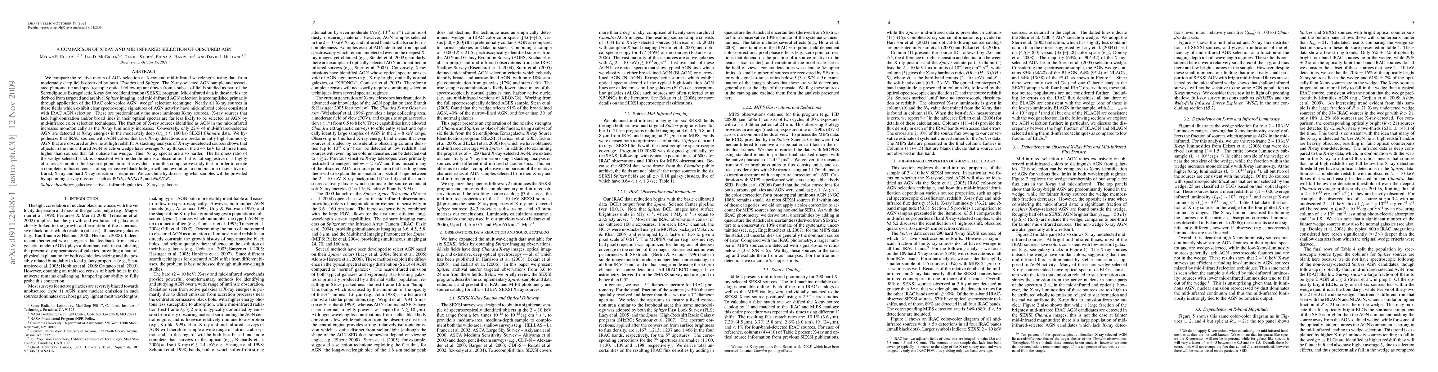 We compare the relative merits of AGN selection at X-ray and mid-infrared wavelengths using data from moderately deep fields observed by both Chandra and Spitzer. The X-ray-selected AGN sample and associated optical follow-up are drawn from the SEXSI program. Mid-infrared data in these fields are derived from Spitzer imaging, and mid-infrared AGN selection is accomplished primarily through application of the IRAC color-color AGN `wedge' selection technique. Nearly all X-ray sources in these fields which exhibit clear spectroscopic signatures of AGN activity have mid-infrared colors consistent with IRAC AGN selection. These are predominantly the most luminous X-ray sources. X-ray sources that lack high-ionization and/or broad lines in their optical spectra are far less likely to be selected as AGN by mid-infrared color selection techniques. The fraction of X-ray sources identified as AGN in the mid-infrared increases monotonically as the X-ray luminosity increases. Conversely, only 22% of mid-infrared-selected AGN are detected at X-ray energies in the moderately deep (~100 ks) Chandra data. We hypothesize that the IRAC AGN that lack X-ray detections are predominantly high-luminosity AGN that are obscured and/or lie at high redshift. A stacking analysis of X-ray-undetected sources shows that objects in the mid-infrared AGN selection wedge have average X-ray fluxes in the 2-8 keV band three times higher than sources that fall outside the wedge. Their X-ray spectra are also harder. It is evident from this comparative study that in order to create a complete, unbiased census of supermassive black hole growth and evolution, a combination of sensitive infrared, X-ray and hard X-ray selection is required. We conclude by discussing what samples will be provided by upcoming survey missions such as WISE, eROSITA, and NuSTAR.