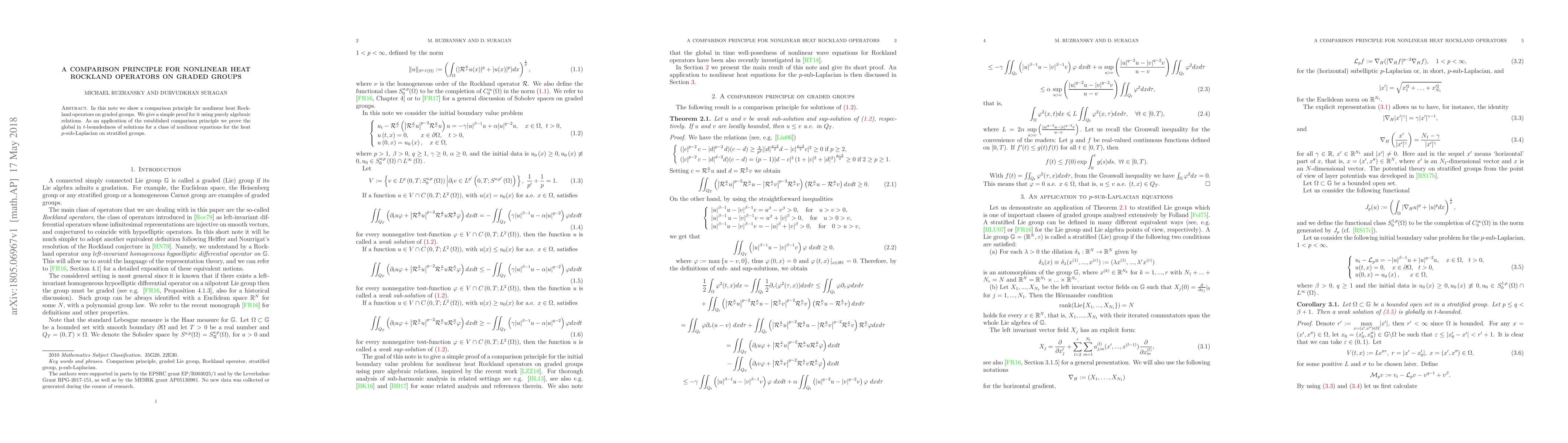 Summary: This paper establishes a comparison principle for nonlinear heat Rockland operators on graded groups, proving it through algebraic relations. It also demonstrates the global in time boundedness of solutions for a class of nonlinear equations involving the heat $p$-sub-Laplacian on stratified groups.
