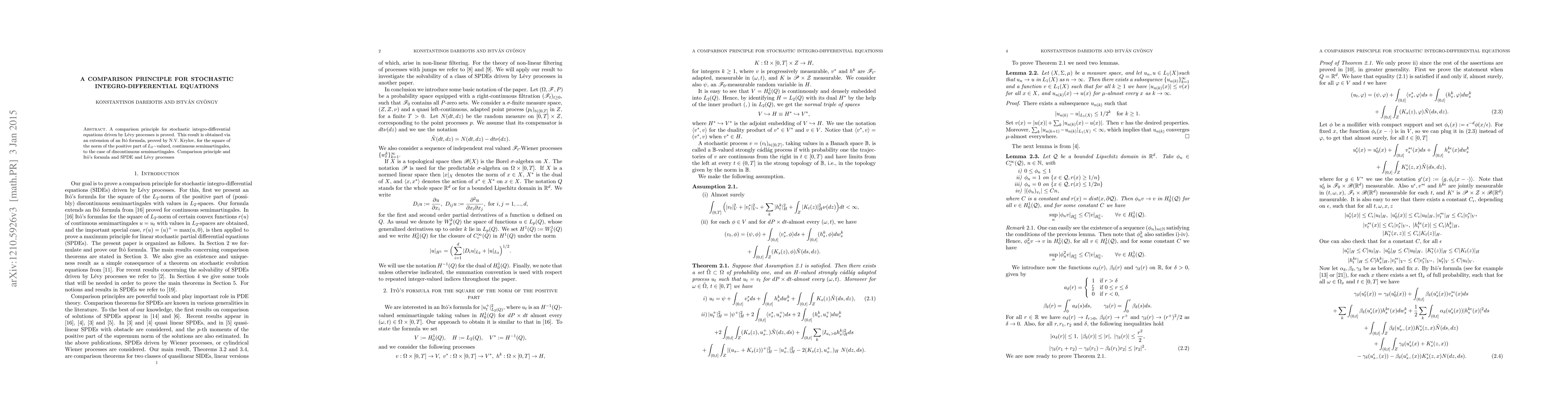 A comparison principle is proved for stochastic integro-differential equations driven by Levy processes, extending an Ito formula to discontinuous semimartingales, with implications for understanding the behavior of these complex systems.
