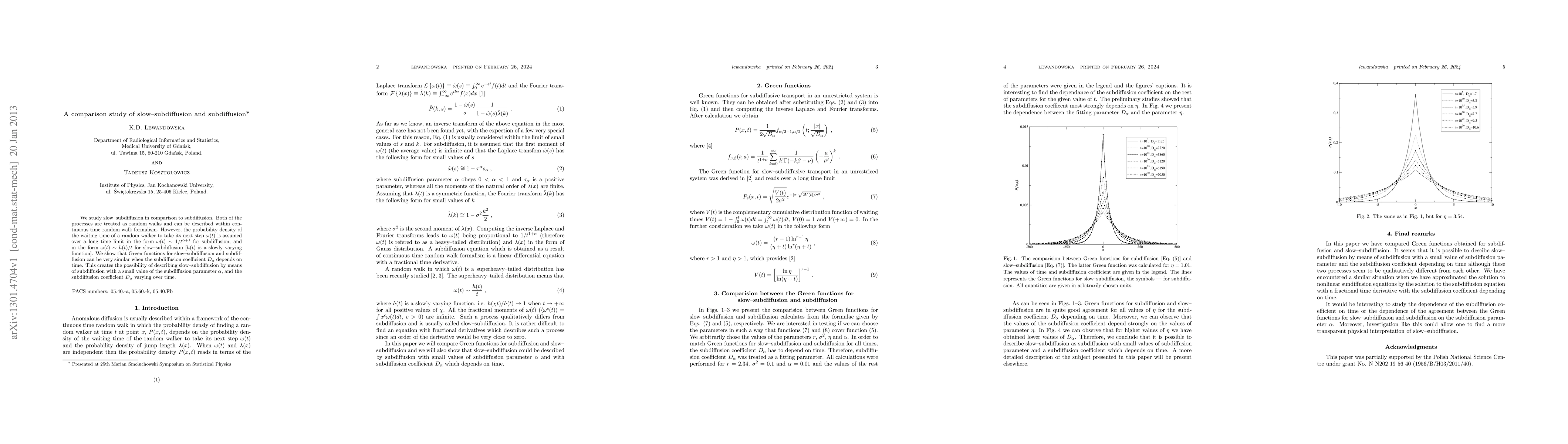 This study compares slow-subdiffusion and subdiffusion, both modeled as random walks, showing that their Green functions can be similar when the subdiffusion coefficient varies over time, suggesting slow-subdiffusion can be described by subdiffusion with a small subdiffusion parameter $\alpha$.