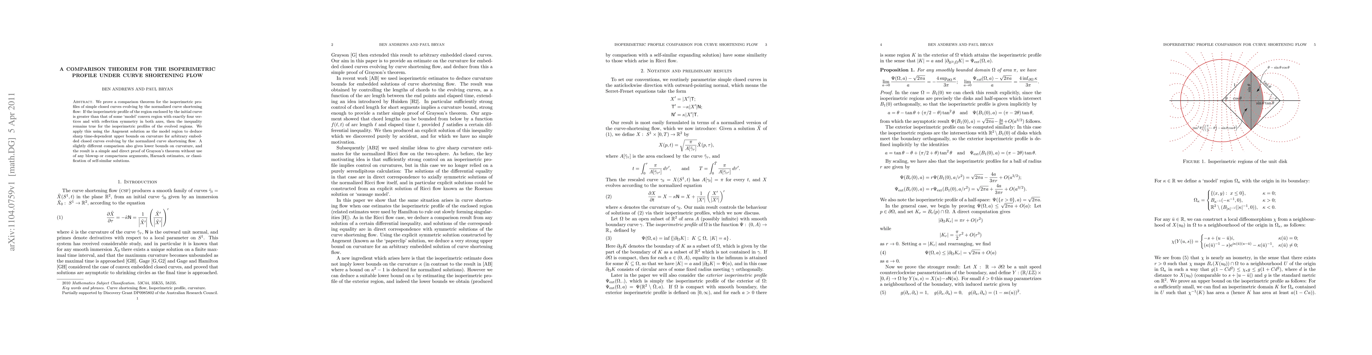 Researchers prove a comparison theorem for isoperimetric profiles of curves evolving under curve shortening flow, providing time-dependent upper bounds on curvature for arbitrary embedded closed curves.