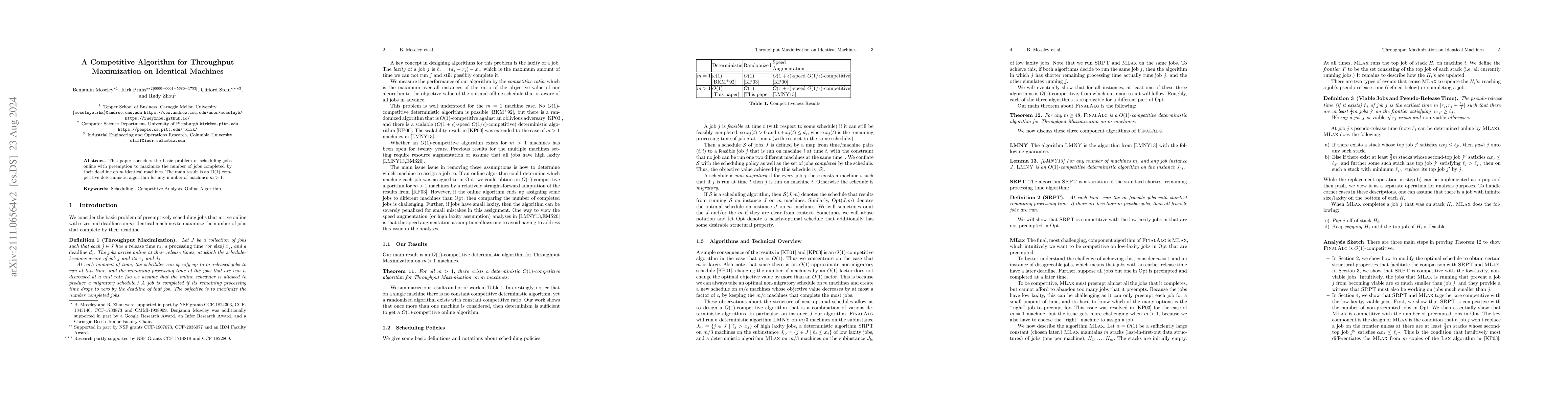 This paper considers the basic problem of scheduling jobs online with preemption to maximize the number of jobs completed by their deadline on $m$ identical machines. The main result is an $O(1)$ competitive deterministic algorithm for any number of machines $m >1$.