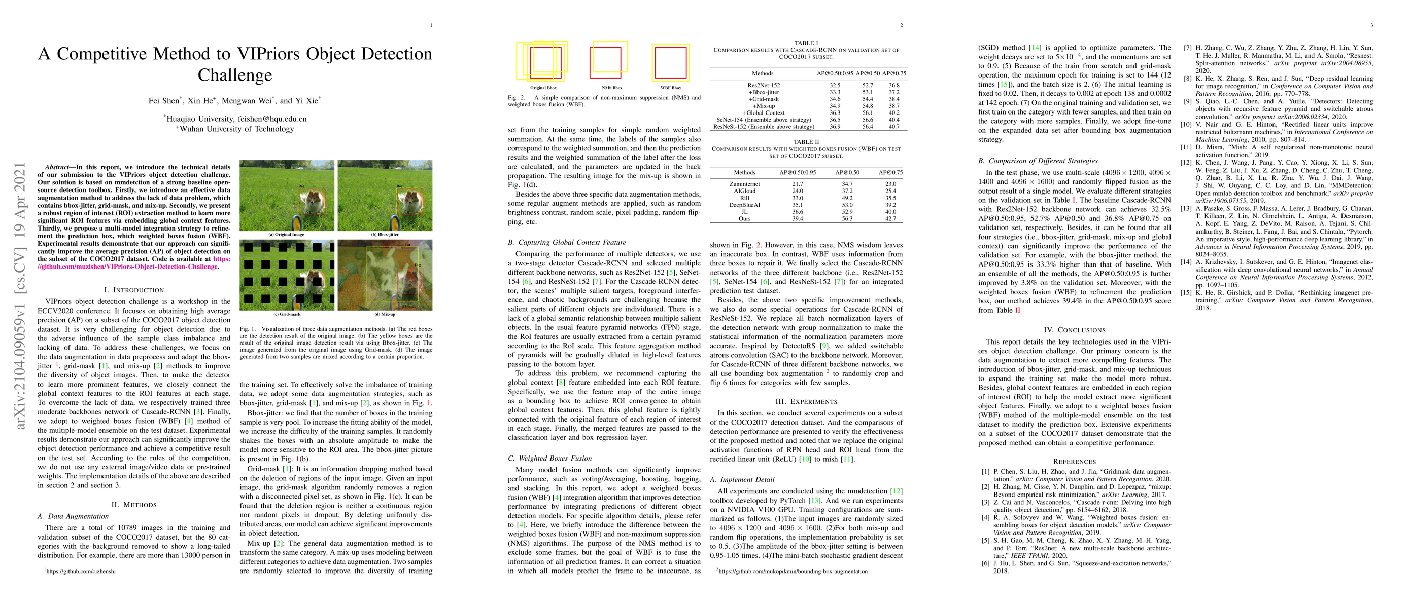 In this report, we introduce the technical details of our submission to the VIPriors object detection challenge. Our solution is based on mmdetction of a strong baseline open-source detection toolbox. Firstly, we introduce an effective data augmentation method to address the lack of data problem, which contains bbox-jitter, grid-mask, and mix-up. Secondly, we present a robust region of interest (ROI) extraction method to learn more significant ROI features via embedding global context features. Thirdly, we propose a multi-model integration strategy to refinement the prediction box, which weighted boxes fusion (WBF). Experimental results demonstrate that our approach can significantly improve the average precision (AP) of object detection on the subset of the COCO2017 dataset.