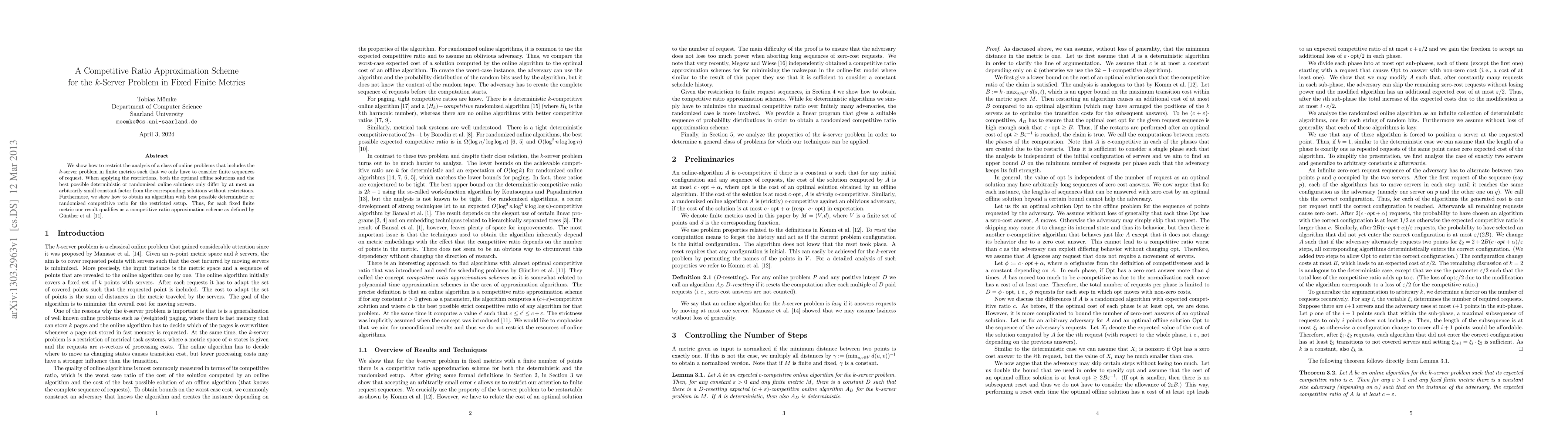 The paper introduces a competitive ratio approximation scheme for the k-server problem in fixed finite metrics, showing that optimal offline solutions differ from best online solutions only by an arbitrarily small constant factor.