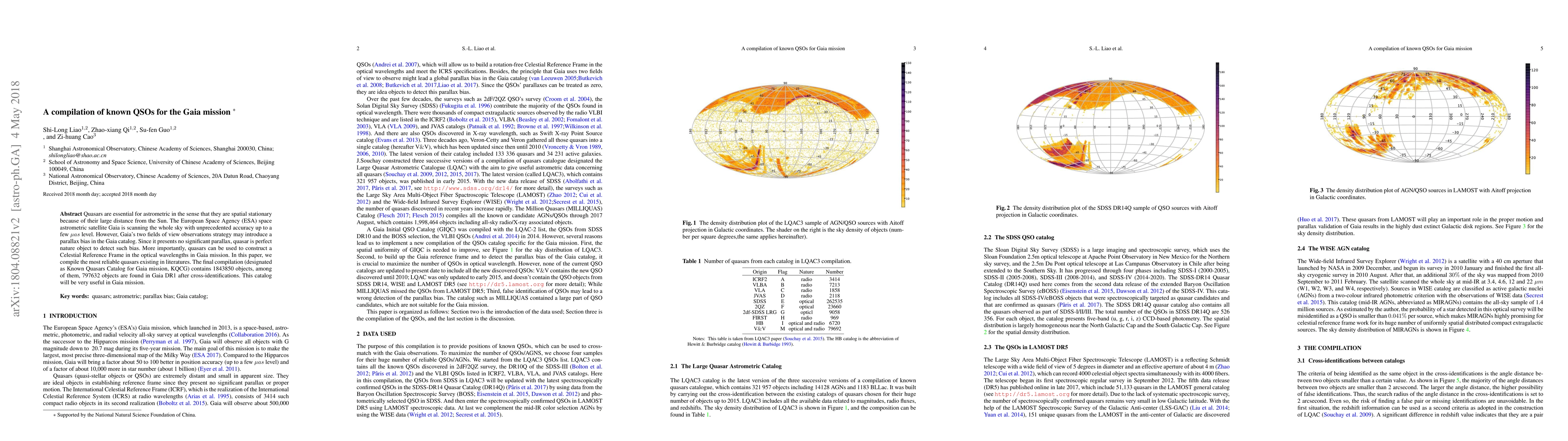 Quasars are essential for astrometric in the sense that they are spatial stationary because of their large distance from the Sun. The European Space Agency (ESA) space astrometric satellite Gaia is scanning the whole sky with unprecedented accuracy up to a few muas level. However, Gaia's two fields of view observations strategy may introduce a parallax bias in the Gaia catalog. Since it presents no significant parallax, quasar is perfect nature object to detect such bias. More importantly, quasars can be used to construct a Celestial Reference Frame in the optical wavelengths in Gaia mission. In this paper, we compile the most reliable quasars existing in literatures. The final compilation (designated as Known Quasars Catalog for Gaia mission, KQCG) contains 1843850 objects, among of them, 797632 objects are found in Gaia DR1 after cross-identifications. This catalog will be very useful in Gaia mission.