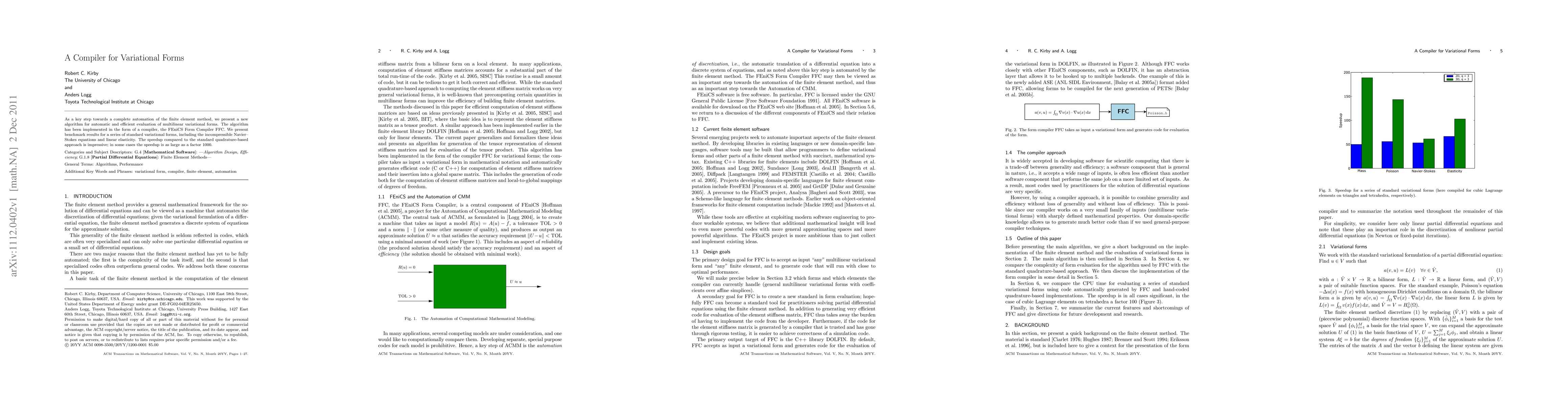As a key step towards a complete automation of the finite element method, we present a new algorithm for automatic and efficient evaluation of multilinear variational forms. The algorithm has been implemented in the form of a compiler, the FEniCS Form Compiler FFC. We present benchmark results for a series of standard variational forms, including the incompressible Navier-Stokes equations and linear elasticity. The speedup compared to the standard quadrature-based approach is impressive; in some cases the speedup is as large as a factor 1000.