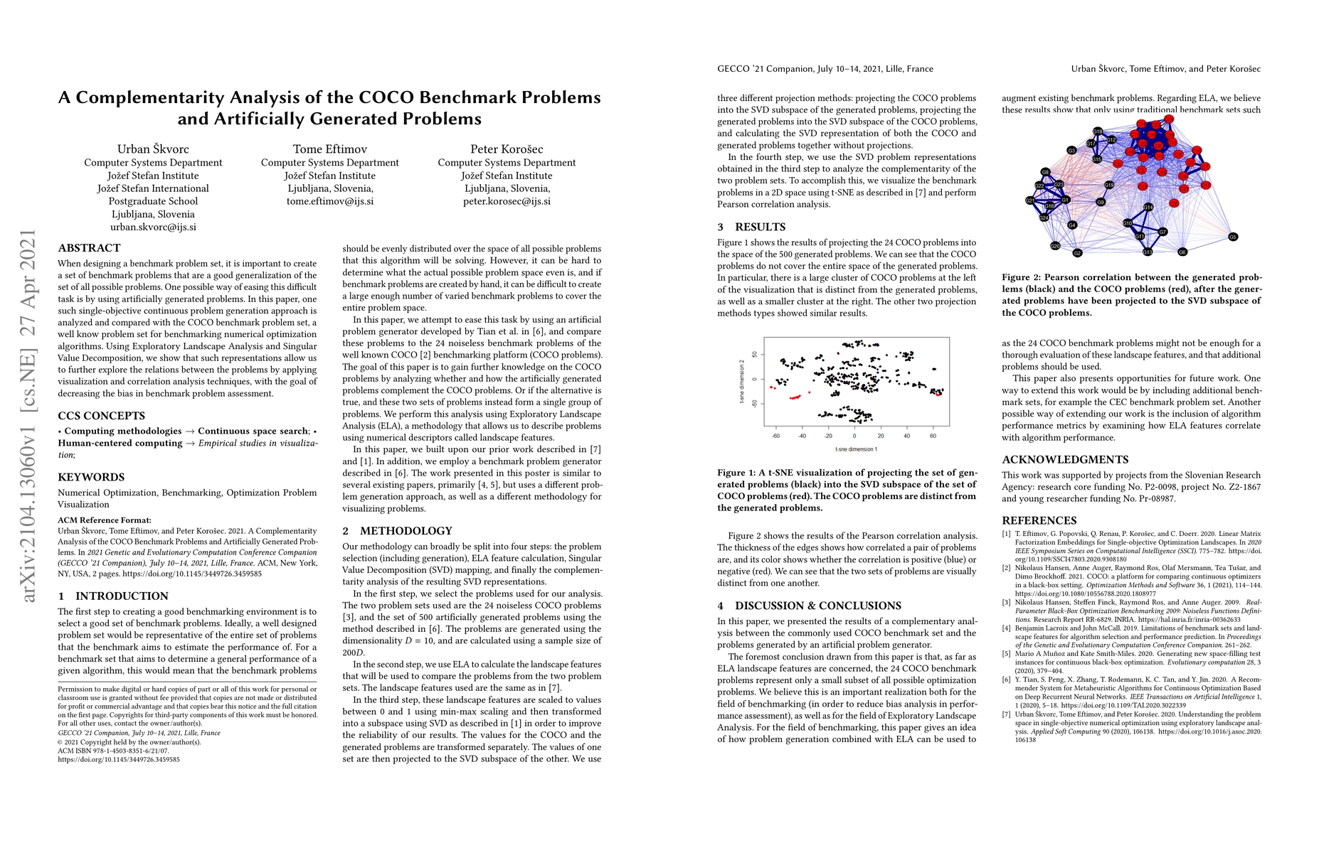 When designing a benchmark problem set, it is important to create a set of benchmark problems that are a good generalization of the set of all possible problems. One possible way of easing this difficult task is by using artificially generated problems. In this paper, one such single-objective continuous problem generation approach is analyzed and compared with the COCO benchmark problem set, a well know problem set for benchmarking numerical optimization algorithms. Using Exploratory Landscape Analysis and Singular Value Decomposition, we show that such representations allow us to further explore the relations between the problems by applying visualization and correlation analysis techniques, with the goal of decreasing the bias in benchmark problem assessment.