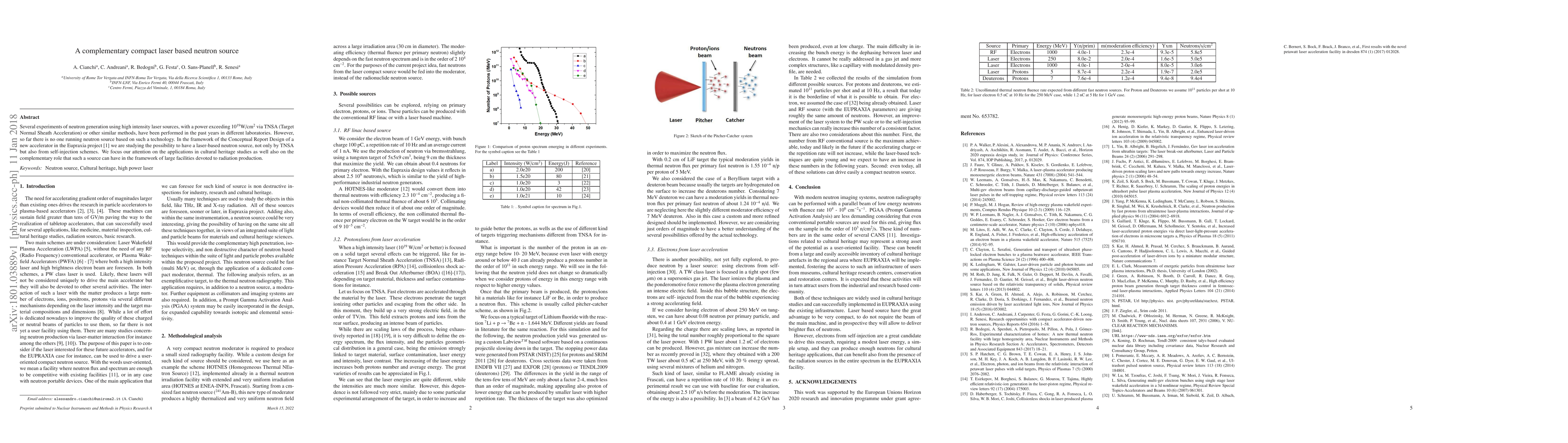 Researchers developed a concept for a compact laser-based neutron source with potential applications in cultural heritage studies and radiation production facilities. They explored various methods, including Target Normal Sheath Acceleration and self-injection schemes, to achieve high-intensity neutron generation.