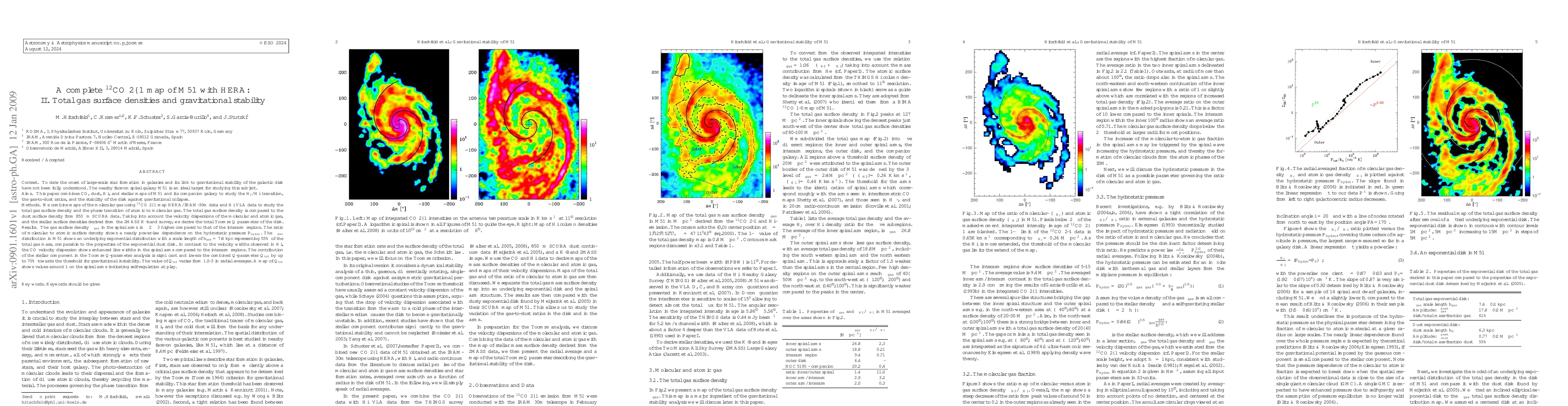 This study uses combined CO, dust, HI, and stellar maps of M51 to analyze gas surface densities, HI-to-H2 transition, and disk gravitational stability. Findings reveal higher gas surface densities in spiral arms than interarm regions, a power-law relation between molecular and atomic gas densities, and an exponential distribution of gas surface density similar to dust. The paper also finds significant stellar contribution lowering the combined Toomre Q-parameter, with Q_tot values varying from 1.5-3 and reaching around 1 on spiral arms, indicating potential gravitational instability.