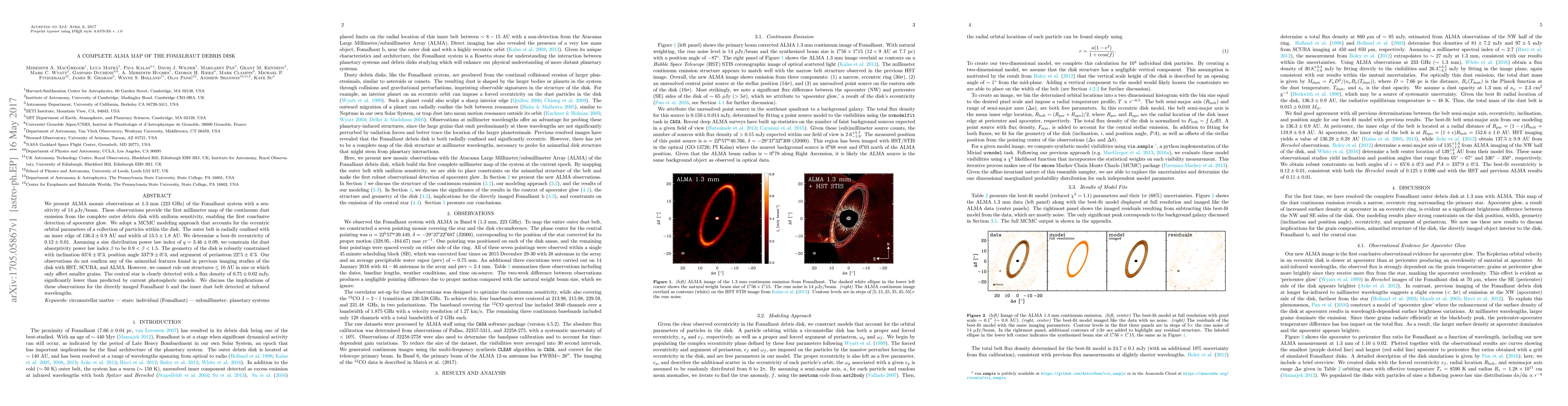 This paper presents the first complete millimeter map of the Fomalhaut debris disk using ALMA, revealing an eccentric outer disk with an inner edge at 136.3 AU and a best-fit eccentricity of 0.12. The study also finds no confirmation of previous azimuthal features but discusses implications for the nearby exoplanet Fomalhaut b and the inner dust belt.