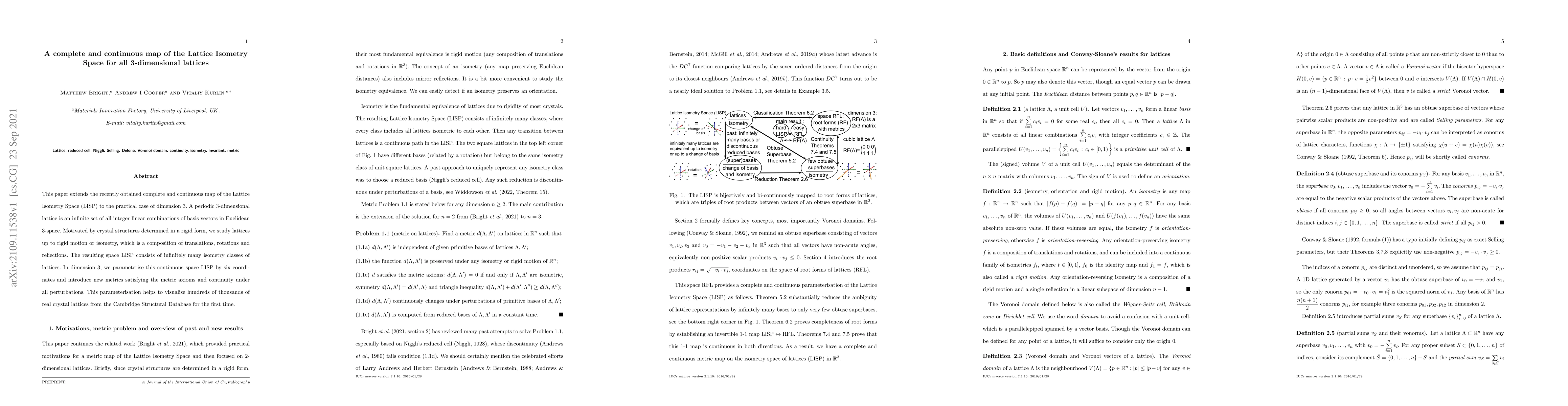 This paper extends the recently obtained complete and continuous map of the Lattice Isometry Space (LISP) to the practical case of dimension 3. A periodic 3-dimensional lattice is an infinite set of all integer linear combinations of basis vectors in Euclidean 3-space. Motivated by crystal structures determined in a rigid form, we study lattices up to rigid motion or isometry, which is a composition of translations, rotations and reflections. The resulting space LISP consists of infinitely many isometry classes of lattices. In dimension 3, we parameterise this continuous space LISP by six coordinates and introduce new metrics satisfying the metric axioms and continuity under all perturbations. This parameterisation helps to visualise hundreds of thousands of real crystal lattices from the Cambridge Structural Database for the first time.