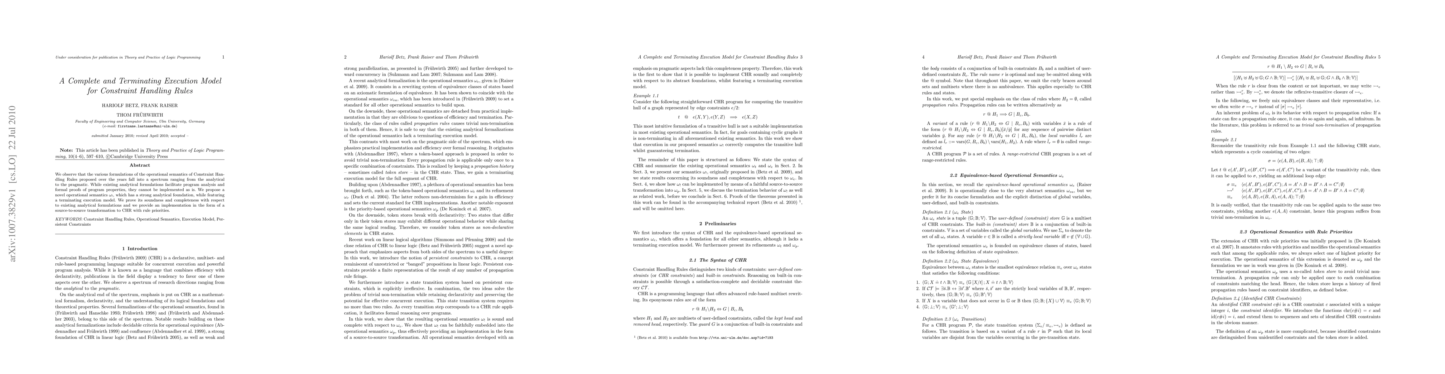 This paper introduces a novel operational semantics for Constraint Handling Rules (CHR) that combines analytical rigor with a terminating execution model, proving its soundness and completeness. An implementation is provided through a source-to-source transformation that incorporates rule priorities.