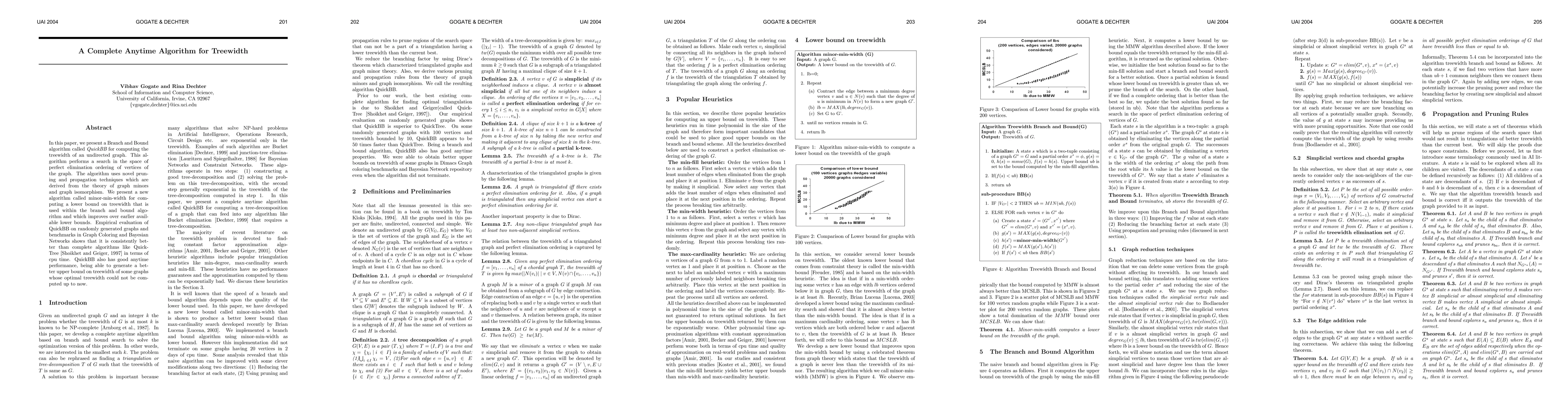This paper introduces QuickBB, a Branch and Bound algorithm for computing treewidth in undirected graphs, utilizing advanced pruning and propagation techniques. It also presents minor-min-width for improved lower bounds, and empirical results show it outperforms existing complete algorithms in terms of CPU time and anytime performance.