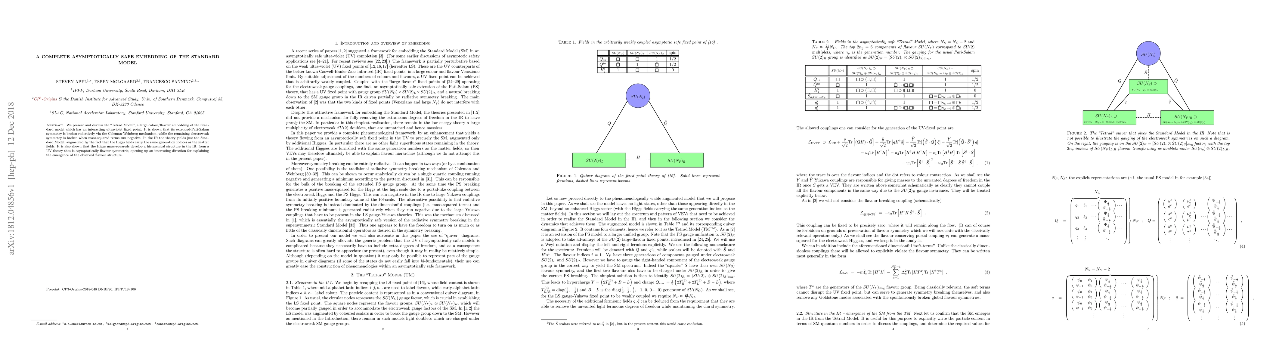 We present and discuss the "Tetrad Model", a large colour/flavour embedding of the Standard model which has an interacting ultraviolet fixed point. It is shown that its extended-Pati-Salam symmetry is broken radiatively via the Coleman-Weinberg mechanism, while the remaining electroweak symmetry is broken when mass-squared terms run negative. In the IR the theory yields just the Standard Model, augmented by the fact that the Higgs fields carry the same generation indices as the matter fields. It is also shown that the Higgs mass-squareds develop a hierarchical structure in the IR, from a UV theory that is asymptotically flavour symmetric, opening up an interesting direction for explaining the emergence of the observed flavour structure.