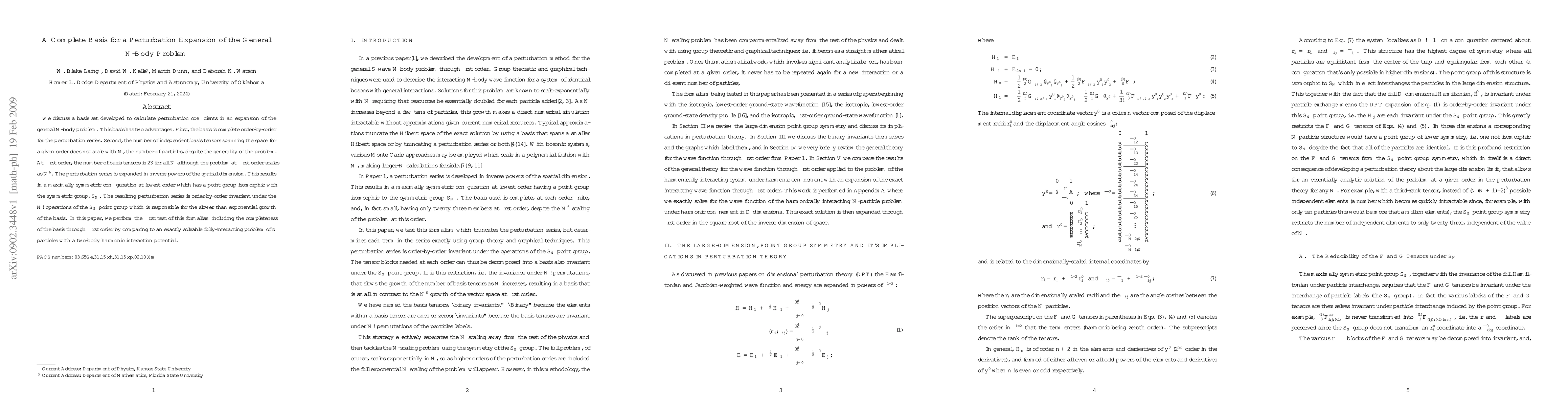 Researchers developed a new basis set to solve the N-body problem through perturbation expansion, offering advantages in completeness and scalability. The method has been tested using an exactly solvable system, demonstrating its potential for efficient solutions.