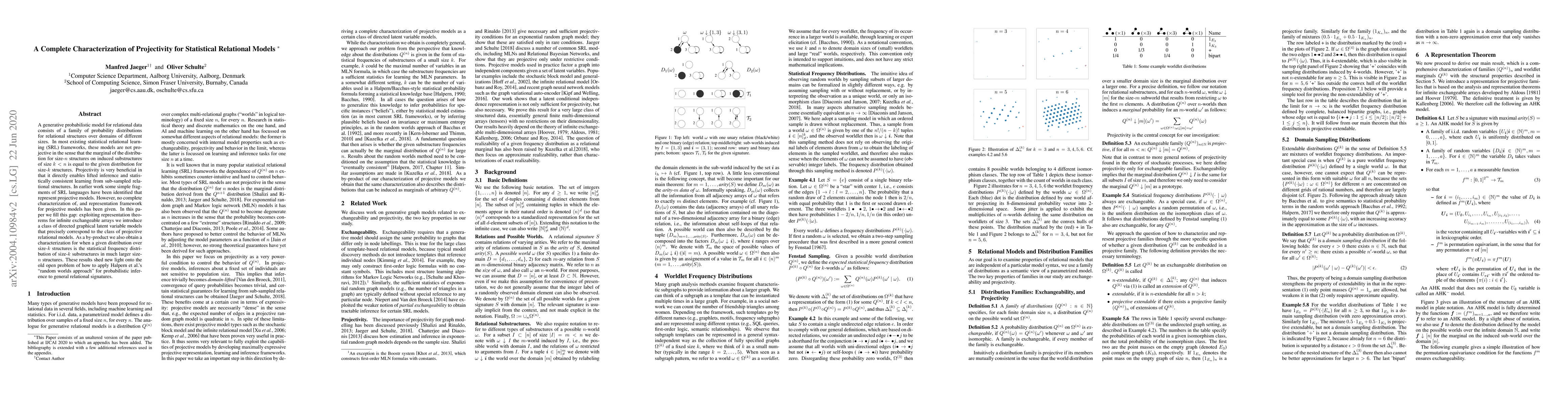 This paper provides a complete characterization of projective statistical relational models, introducing a class of directed graphical latent variable models that precisely represent projective models. It also characterizes when a distribution over size-$k$ structures is the statistical frequency distribution of size-$k$ sub-structures in larger size-$n$ structures.