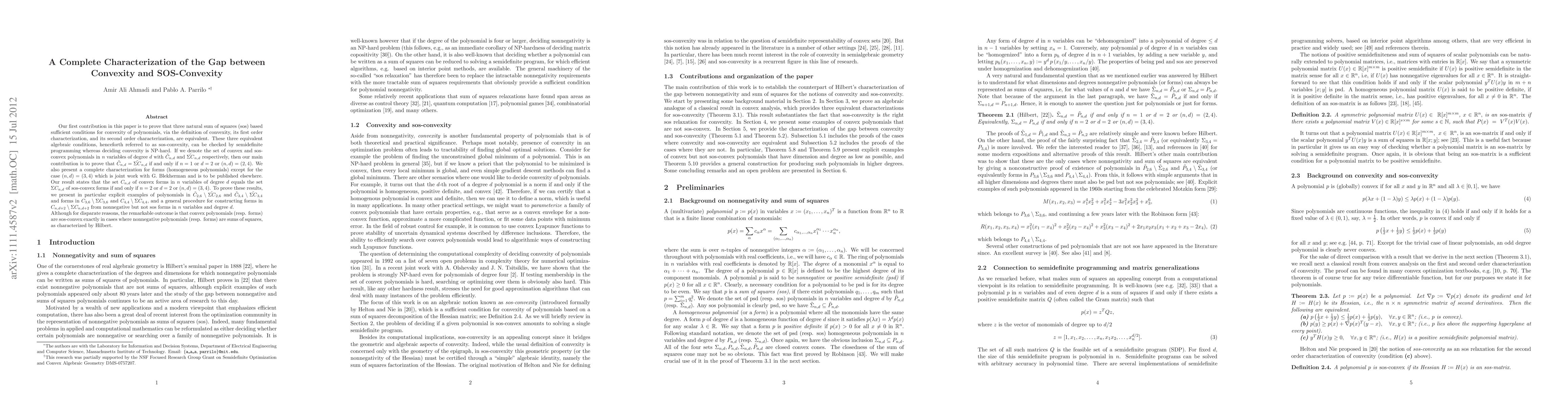 Our first contribution in this paper is to prove that three natural sum of squares (sos) based sufficient conditions for convexity of polynomials, via the definition of convexity, its first order characterization, and its second order characterization, are equivalent. These three equivalent algebraic conditions, henceforth referred to as sos-convexity, can be checked by semidefinite programming whereas deciding convexity is NP-hard. If we denote the set of convex and sos-convex polynomials in $n$ variables of degree $d$ with $\tilde{C}_{n,d}$ and $\tilde{\Sigma C}_{n,d}$ respectively, then our main contribution is to prove that $\tilde{C}_{n,d}=\tilde{\Sigma C}_{n,d}$ if and only if $n=1$ or $d=2$ or $(n,d)=(2,4)$. We also present a complete characterization for forms (homogeneous polynomials) except for the case $(n,d)=(3,4)$ which is joint work with G. Blekherman and is to be published elsewhere. Our result states that the set $C_{n,d}$ of convex forms in $n$ variables of degree $d$ equals the set $\Sigma C_{n,d}$ of sos-convex forms if and only if $n=2$ or $d=2$ or $(n,d)=(3,4)$. To prove these results, we present in particular explicit examples of polynomials in $\tilde{C}_{2,6}\setminus\tilde{\Sigma C}_{2,6}$ and $\tilde{C}_{3,4}\setminus\tilde{\Sigma C}_{3,4}$ and forms in $C_{3,6}\setminus\Sigma C_{3,6}$ and $C_{4,4}\setminus\Sigma C_{4,4}$, and a general procedure for constructing forms in $C_{n,d+2}\setminus\Sigma C_{n,d+2}$ from nonnegative but not sos forms in $n$ variables and degree $d$. Although for disparate reasons, the remarkable outcome is that convex polynomials (resp. forms) are sos-convex exactly in cases where nonnegative polynomials (resp. forms) are sums of squares, as characterized by Hilbert.