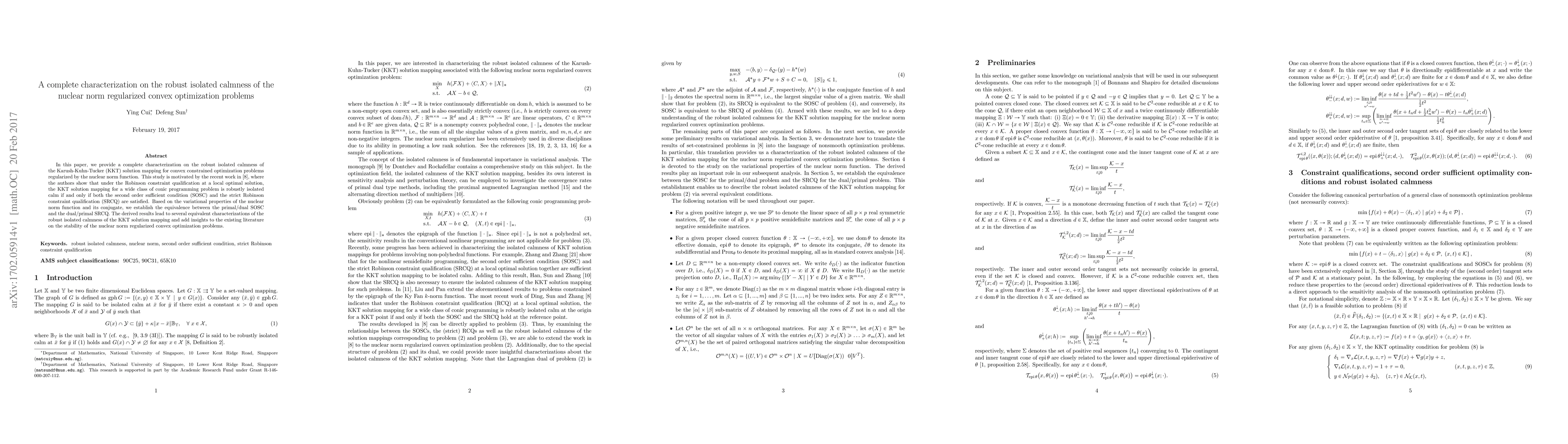 In this paper, we provide a complete characterization on the robust isolated calmness of the Karush-Kuhn-Tucker (KKT) solution mapping for convex constrained optimization problems regularized by the nuclear norm function. This study is motivated by the recent work in [8], where the authors show that under the Robinson constraint qualification at a local optimal solution, the KKT solution mapping for a wide class of conic programming problem is robustly isolated calm if and only if both the second order sufficient condition (SOSC) and the strict Robinson constraint qualification (SRCQ) are satisfied. Based on the variational properties of the nuclear norm function and its conjugate, we establish the equivalence between the primal/dual SOSC and the dual/primal SRCQ. The derived results lead to several equivalent characterizations of the robust isolated calmness of the KKT solution mapping and add insights to the existing literature on the stability of the nuclear norm regularized convex optimization problems.