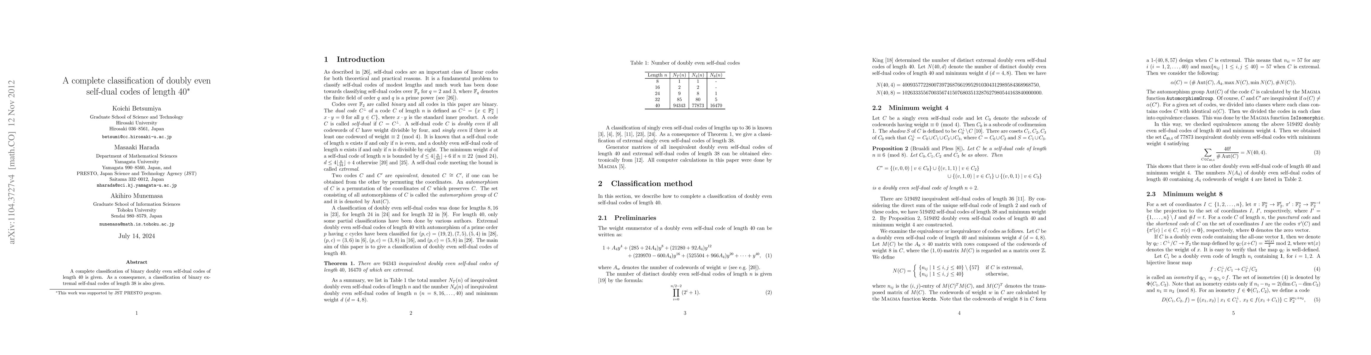 This paper provides a complete classification of binary doubly even self-dual codes of length 40 and, as a result, also classifies binary extremal self-dual codes of length 38. The findings contribute significantly to the understanding of code structures in these specific lengths.