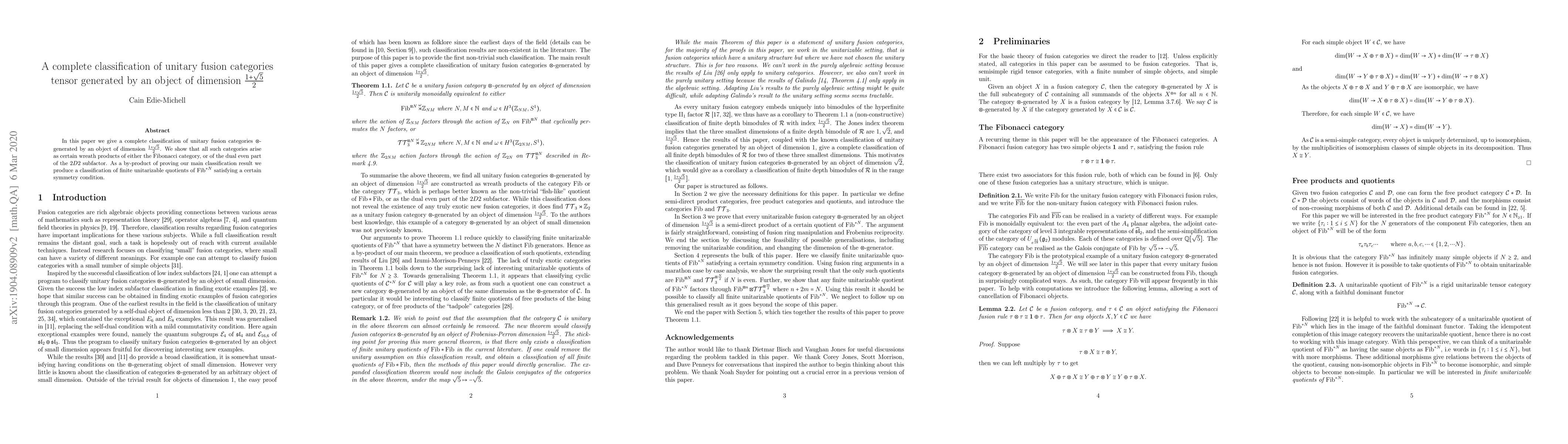 This paper classifies unitary fusion categories tensor-generated by an object of dimension $\frac{1 + \sqrt{5}}{2}$, showing they arise from wreath products of the Fibonacci category or the dual even part of the $2D2$ subfactor. It also classifies finite unitarizable quotients of $\operatorname{Fib}^{*N}$ with a specific symmetry.