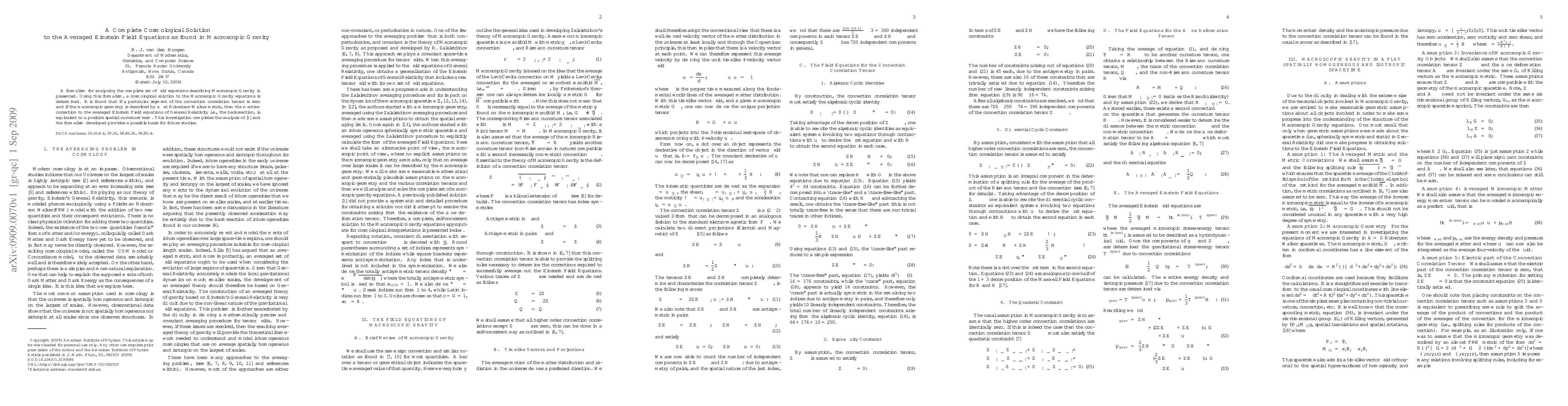 A formalism for analyzing the complete set of field equations describing Macroscopic Gravity is presented. Using this formalism, a cosmological solution to the Macroscopic Gravity equations is determined. It is found that if a particular segment of the connection correlation tensor is zero and if the macroscopic geometry is described by a flat Robertson-Walker metric, then the effective correction to the averaged Einstein Field equations of General Relativity i.e., the backreaction, is equivalent to a positive spatial curvature term. This investigation completes the analysis of [Phys. Rev. Lett., vol. 95, 151102, (2005)] and the formalism developed provides a possible basis for future studies.