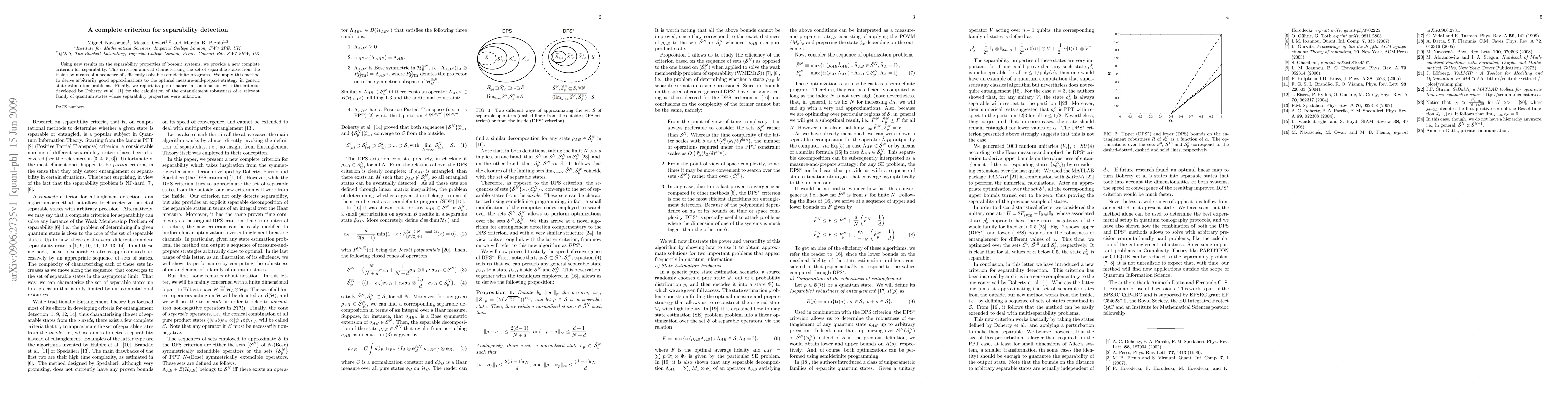 Using new results on the separability properties of bosonic systems, we provide a new complete criterion for separability. This criterion aims at characterizing the set of separable states from the inside by means of a sequence of efficiently solvable semidefinite programs. We apply this method to derive arbitrarily good approximations to the optimal measure-and-prepare strategy in generic state estimation problems. Finally, we report its performance in combination with the criterion developed by Doherty et al. [1] for the calculation of the entanglement robustness of a relevant family of quantum states whose separability properties were unknown.