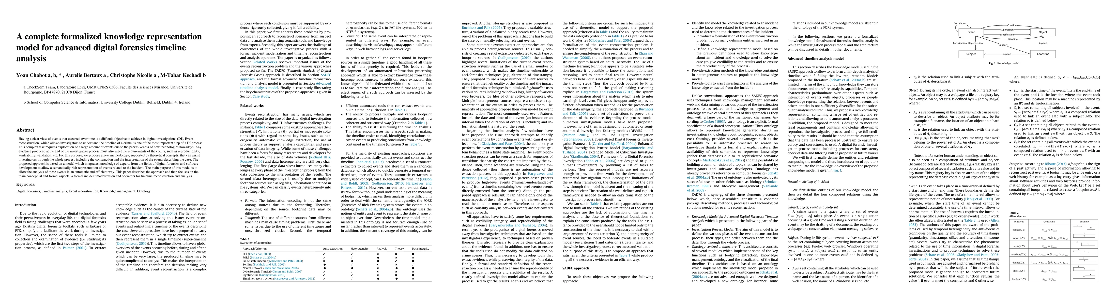 The model integrates expertise from digital forensics and software development to create a semantically rich representation of events, facilitating automatic analysis and interpretation.