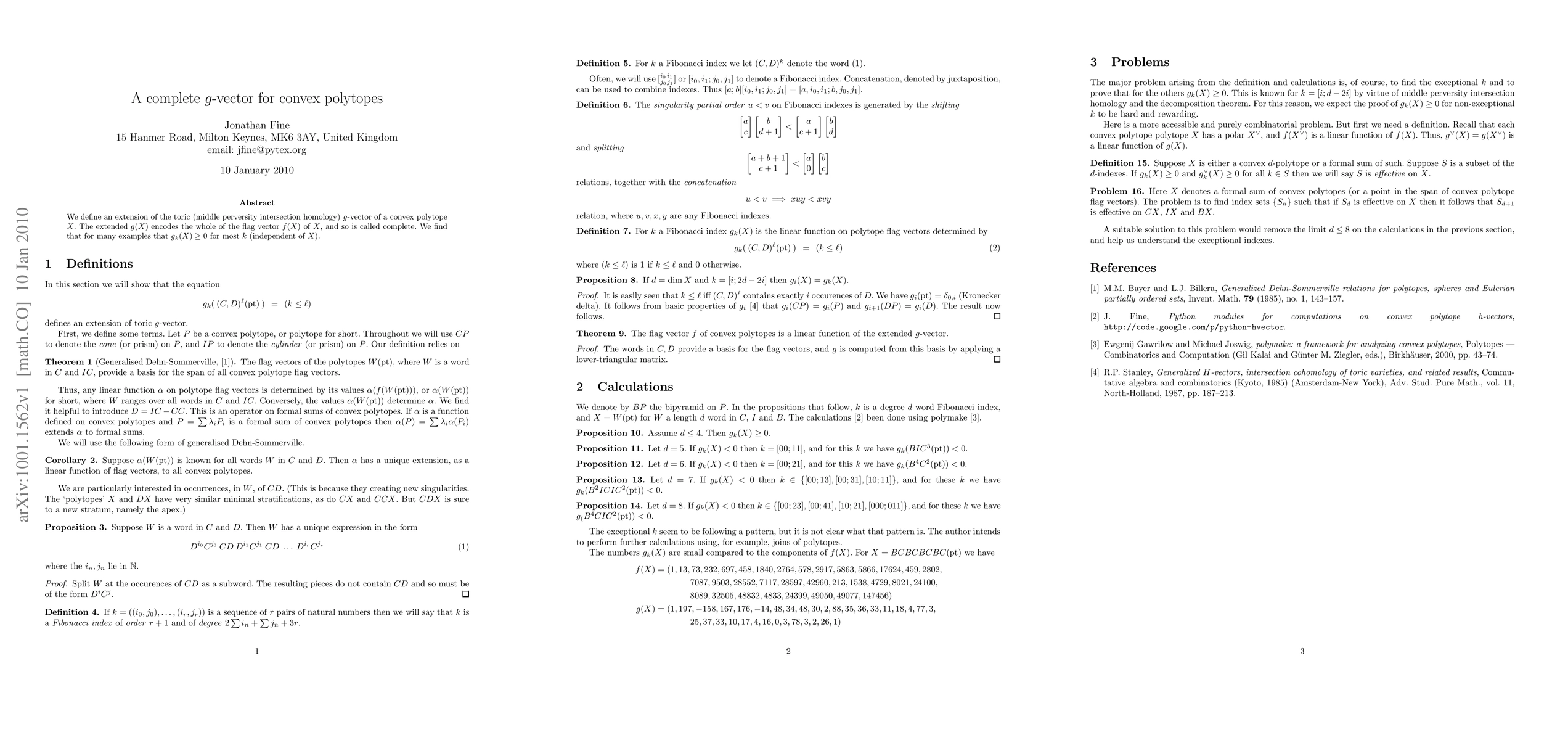 Summary: The paper introduces a complete $g$-vector for convex polytopes that extends the toric $g$-vector, incorporating the entire flag vector $f(X)$ and demonstrating that $g_k(X)\geq 0$ for most $k$ across many examples.