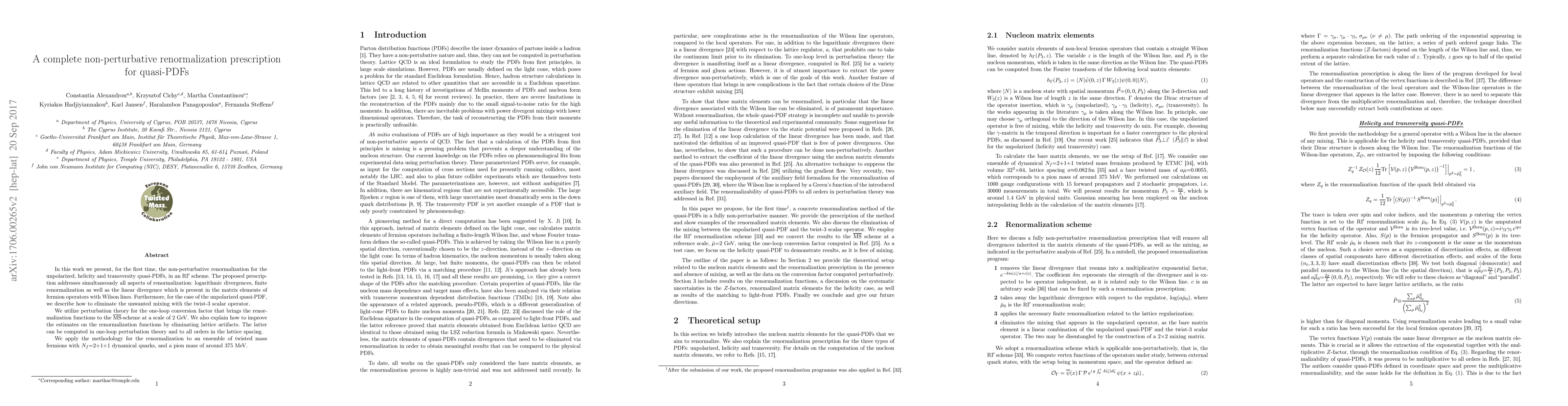 In this work we present, for the first time, the non-perturbative renormalization for the unpolarized, helicity and transversity quasi-PDFs, in an RI' scheme. The proposed prescription addresses simultaneously all aspects of renormalization: logarithmic divergences, finite renormalization as well as the linear divergence which is present in the matrix elements of fermion operators with Wilson lines. Furthermore, for the case of the unpolarized quasi-PDFs, we describe how to eliminate the unwanted mixing with the twist-3 scalar operator. We utilize perturbation theory for the one-loop conversion factor that brings the renormalization functions to the MS-scheme at a scale of 2 GeV. We also explain how to improve the estimates on the renormalization functions by eliminating lattice artifacts. The latter can be computed in one-loop perturbation theory and to all orders in the lattice spacing. We apply the methodology for the renormalization to an ensemble of twisted mass fermions with Nf=2+1+1 dynamical light quarks, and a pion mass of around 375 MeV.