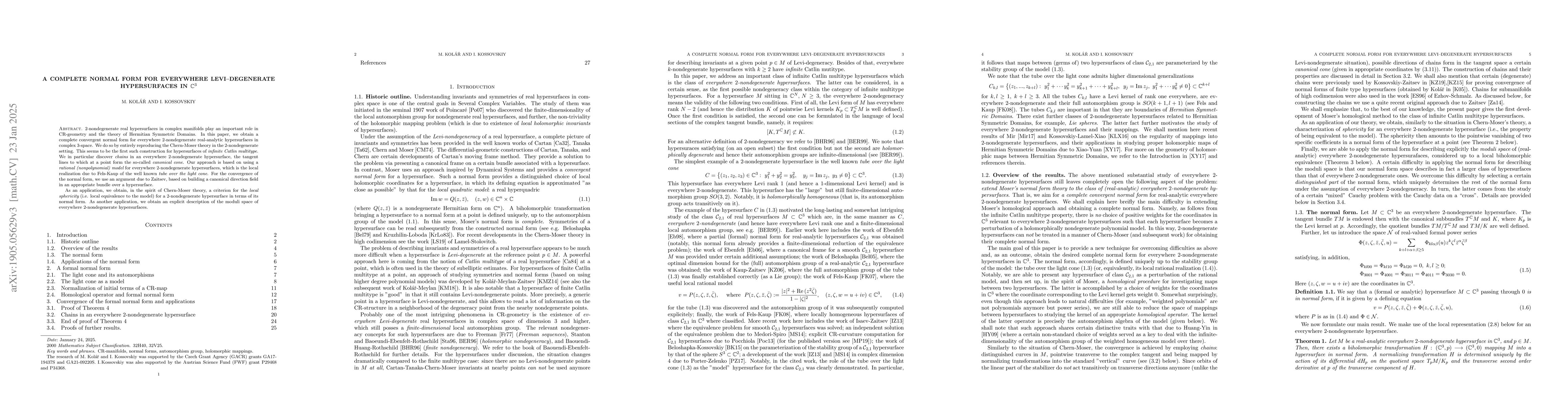 Researchers develop a complete normal form for everywhere 2-nondegenerate real-analytic hypersurfaces in complex 3-space, providing a new tool for studying CR-geometry and Hermitian Symmetric Domains.