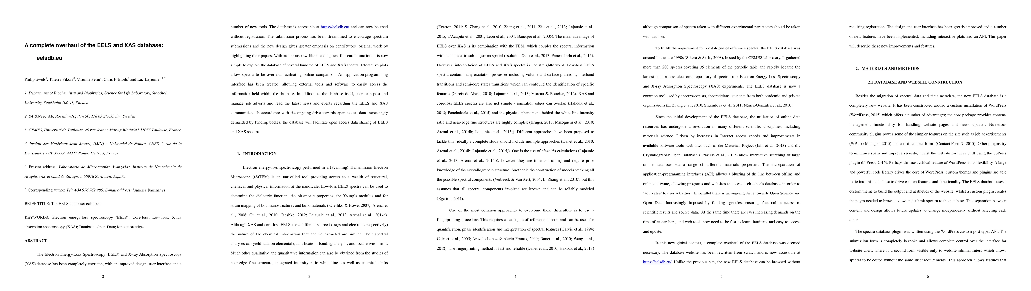 The EELS and XAS database has been revamped with a new design, improved user interface, and streamlined submission process, now accessible without registration. The enhanced database features advanced search tools, interactive plots, and an API for external access, promoting open access to EELS and XAS spectra.