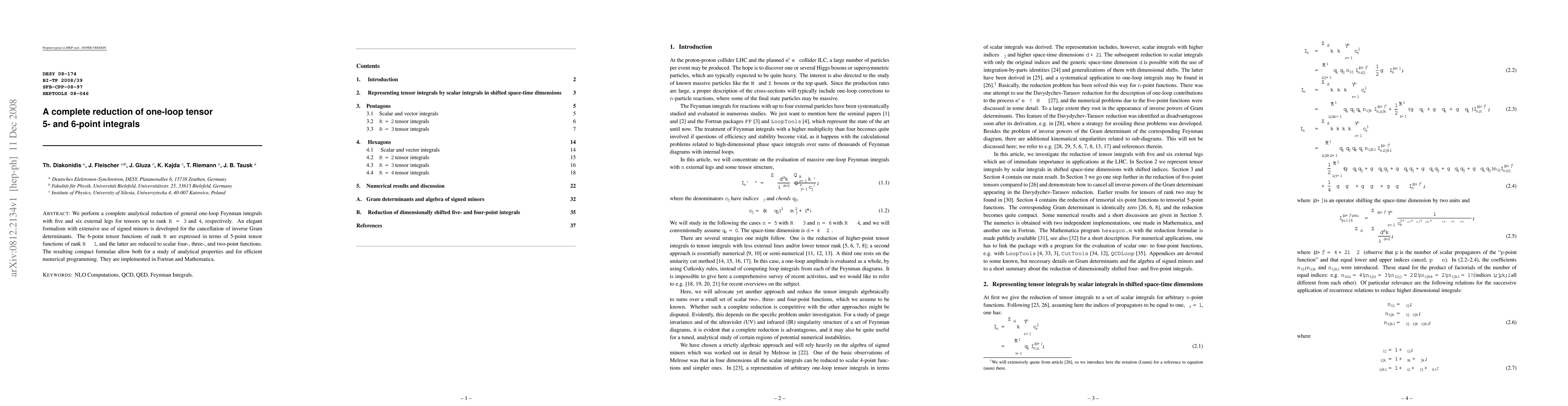 The research performs a complete analytical reduction of general one-loop Feynman integrals with five and six external legs for tensors up to rank R=3 and 4, respectively. It develops an elegant formalism using signed minors to cancel inverse Gram determinants.