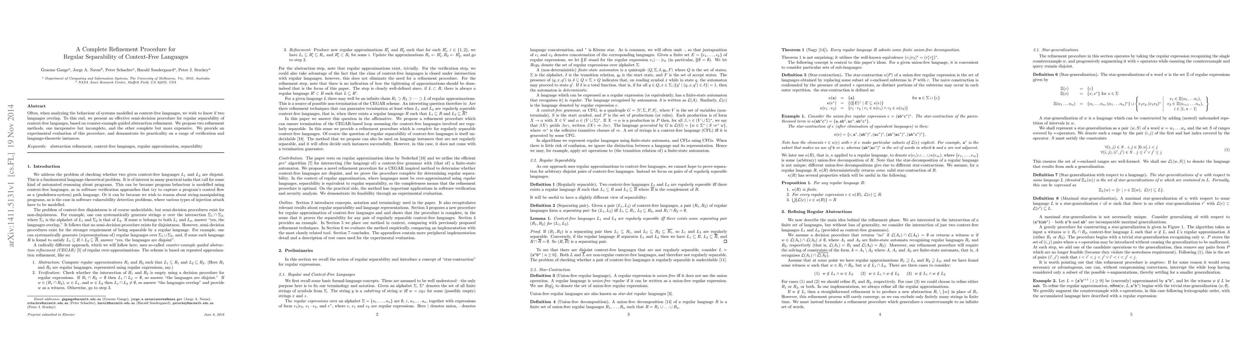 Often, when analyzing the behaviour of systems modelled as context-free languages, we wish to know if two languages overlap. To this end, we present an effective semi-decision procedure for regular separability of context-free languages, based on counter-example guided abstraction refinement. We propose two refinement methods, one inexpensive but incomplete, and the other complete but more expensive. We provide an experimental evaluation of this procedure, and demonstrate its practicality on a range of verification and language-theoretic instances.