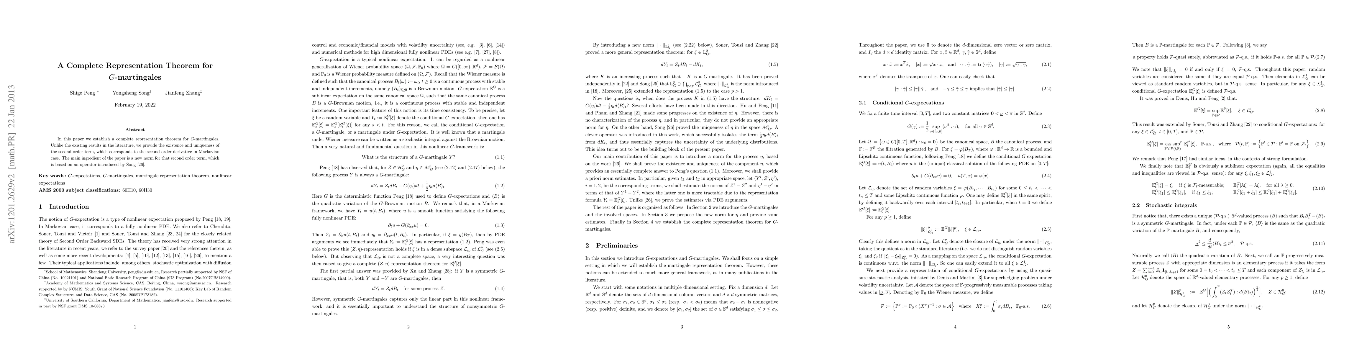 Researchers establish a complete representation theorem for $G$-martingales, providing existence and uniqueness of the second-order term, which is crucial in Markovian cases.