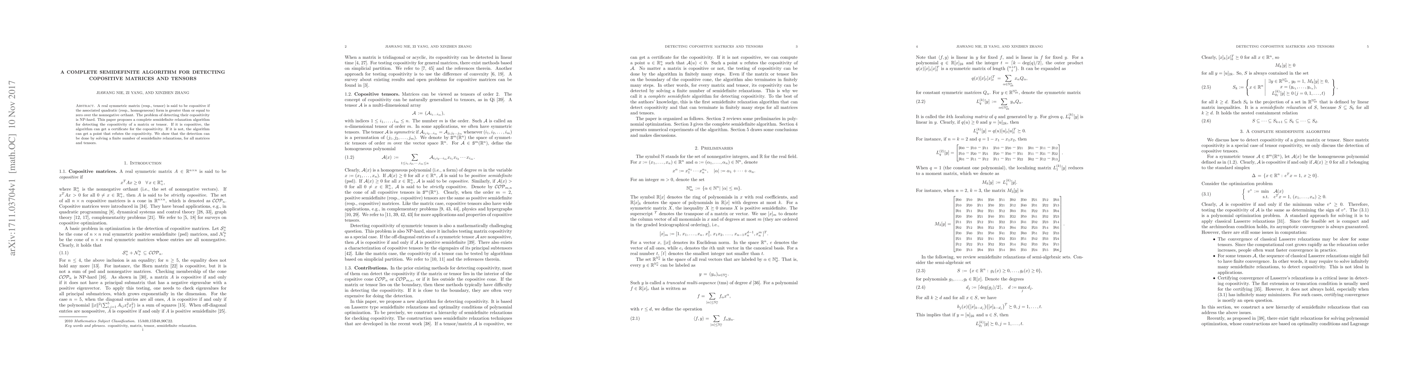 A real symmetric matrix (resp., tensor) is said to be copositive if the associated quadratic (resp., homogeneous) form is greater than or equal to zero over the nonnegative orthant. The problem of detecting their copositivity is NP-hard. This paper proposes a complete semidefinite relaxation algorithm for detecting the copositivity of a matrix or tensor. If it is copositive, the algorithm can get a certificate for the copositivity. If it is not, the algorithm can get a point that refutes the copositivity. We show that the detection can be done by solving a finite number of semidefinite relaxations, for all matrices and tensors.