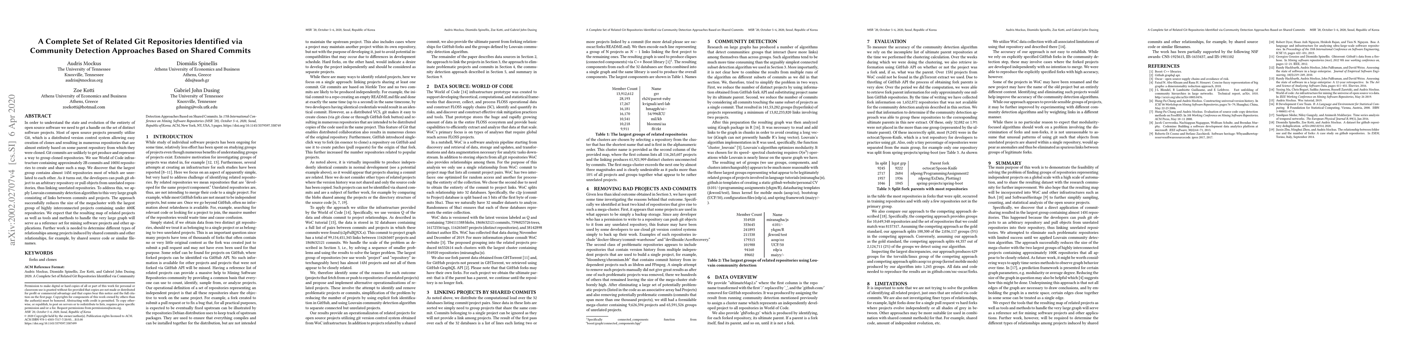 This paper proposes a method to identify related Git repositories using shared commits and community detection algorithms, reducing a large cluster of nearly 14M repositories to under 100K interconnected projects. The approach aims to create a comprehensive map of open-source software projects for further analysis and mining.