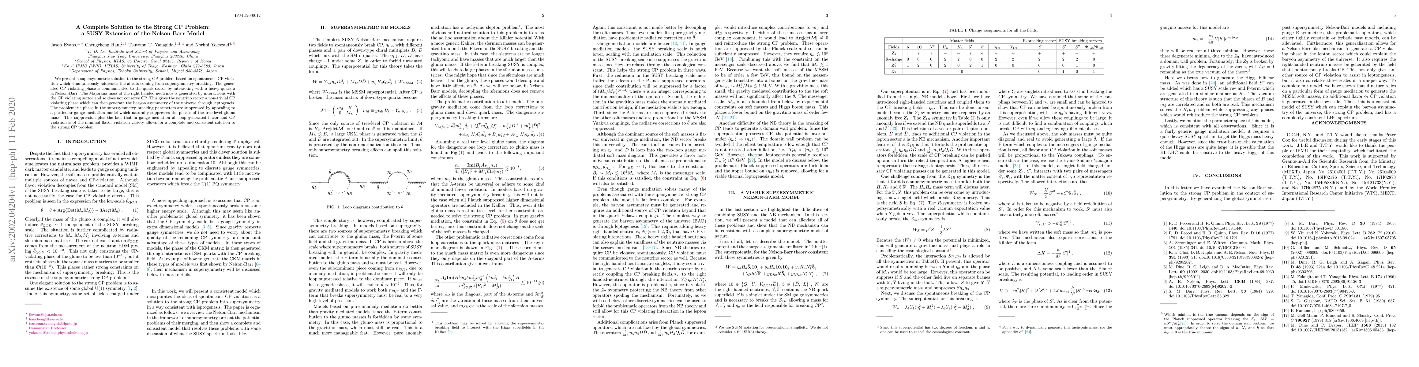 We present a supersymmetric solution to the strong CP problem based on spontaneous CP violation which simultaneously addresses the affects coming from supersymmetry breaking. The generated CP violating phase is communicated to the quark sector by interacting with a heavy quark a la Nelson-Barr. The Majorana mass of the right handed neutrinos is generated by interactions with the CP violating sector and so does not conserve CP. This gives the neutrino sector a non-trivial CP violating phase which can then generate the baryon asymmetry of the universe through leptogeneis. The problematic phase in the supersymmetry breaking parameters are suppressed by appealing to a particular gauge mediation model which naturally suppresses the phases of the tree-level gluino mass. This suppression plus the fact that in gauge mediation all loop generated flavor and CP violation is of the minimal flavor violation variety allows for a complete and consistent solution to the strong CP problem.