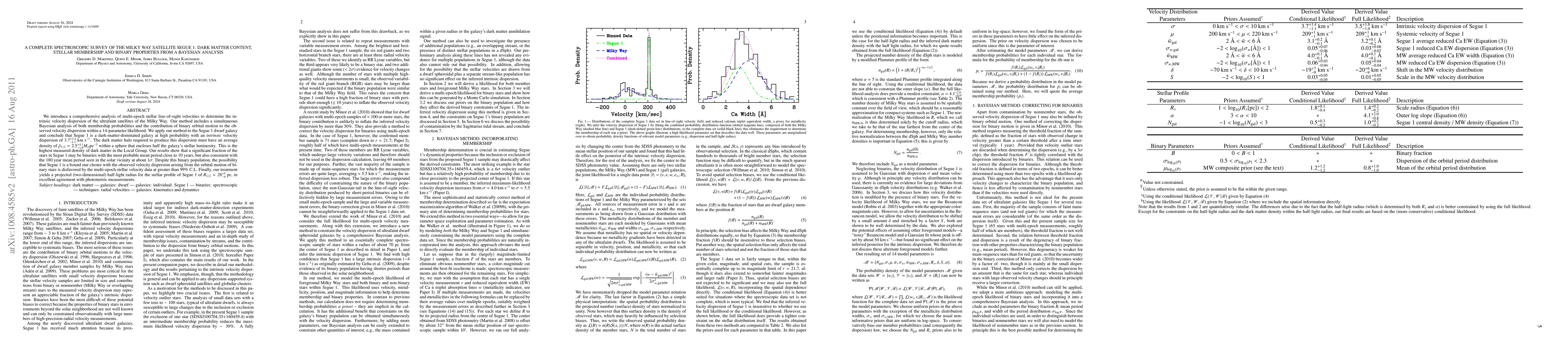 This study uses Bayesian analysis to determine the dark matter content and stellar properties of the Milky Way satellite Segue 1, finding it to be dark matter-dominated with a high intrinsic velocity dispersion of 3.7^{+1.4}_{-1.1} km/sec, indicating a dense dark matter halo. The analysis also suggests a significant binary star population but rules out the possibility that the observed dispersion is solely due to binary motion.