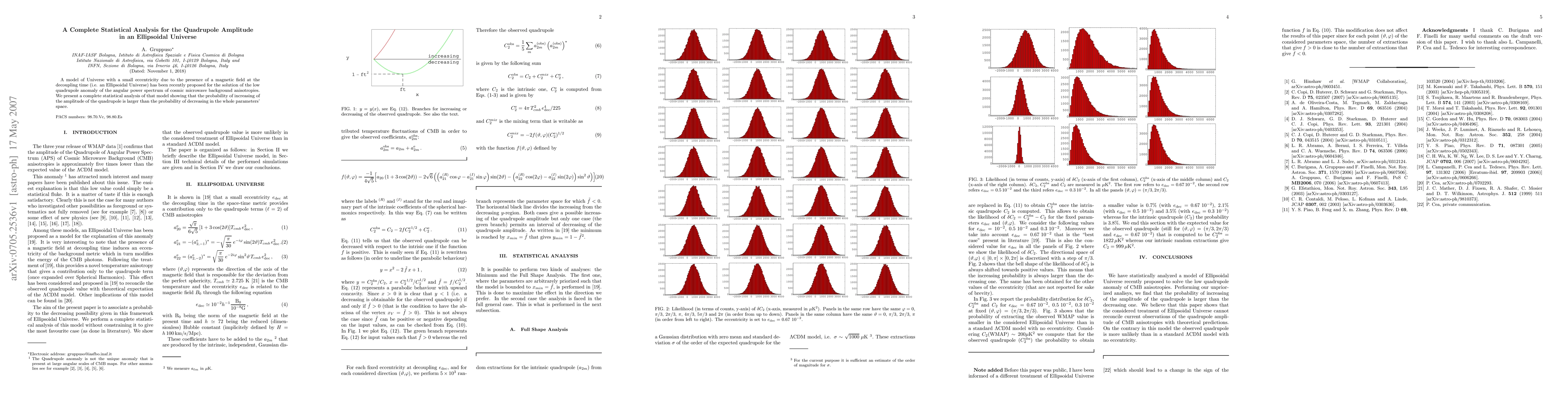 This paper proposes an Ellipsoidal Universe model to address the low quadrupole anomaly in cosmic microwave background anisotropies. It conducts a comprehensive statistical analysis demonstrating that the likelihood of the quadrupole amplitude increasing is higher than decreasing across all parameter spaces.